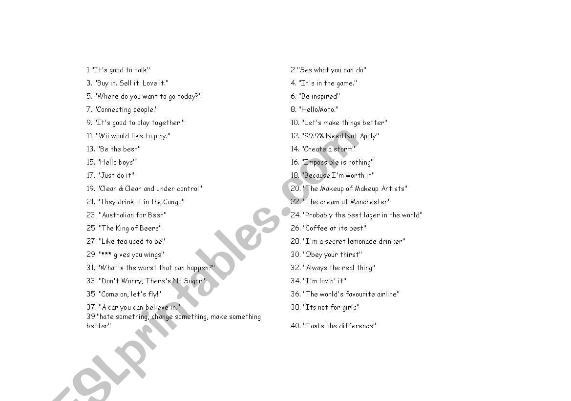 Slogan Match Up Quiz Printable Party Game Company Slogans Activity Worksheets Library