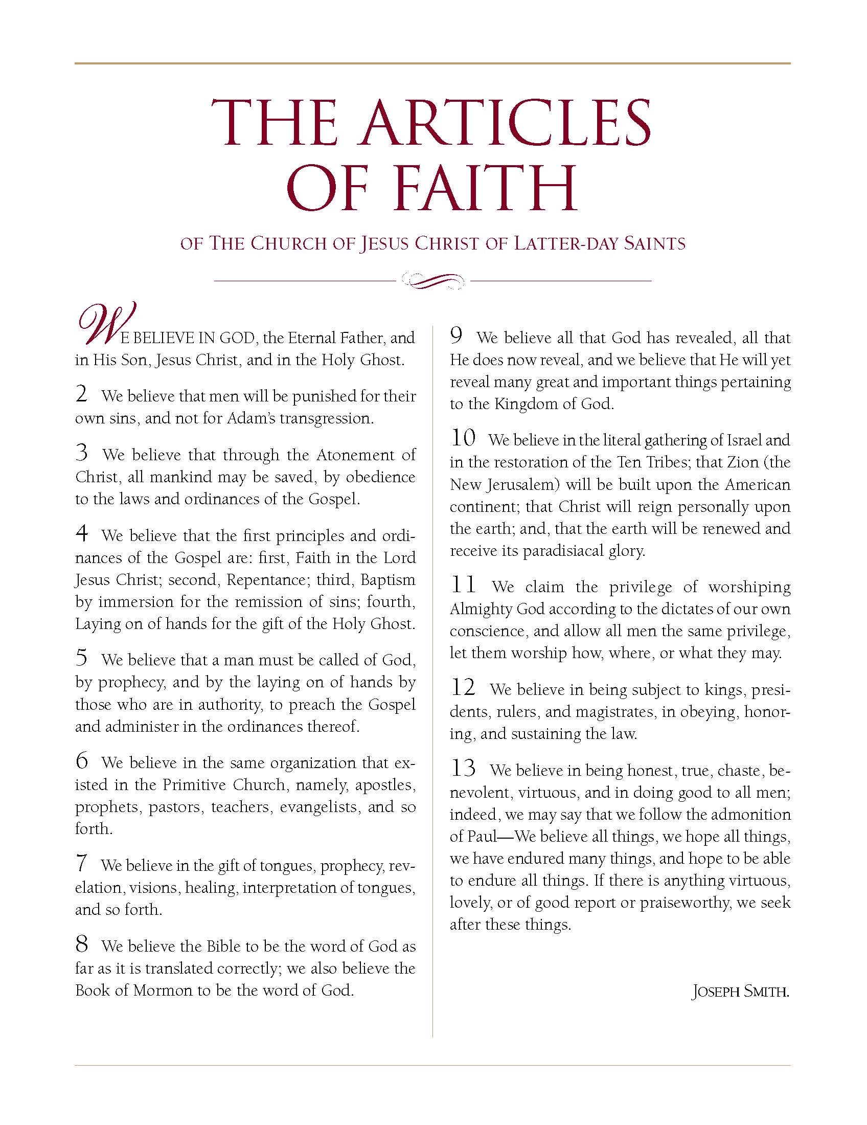 13 Articles Of Faith Printable