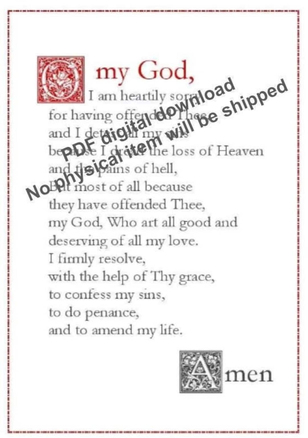 Act Of Contrition english Catholic Prayer Card Printable A4 Wall Art Christian Decor Etsy