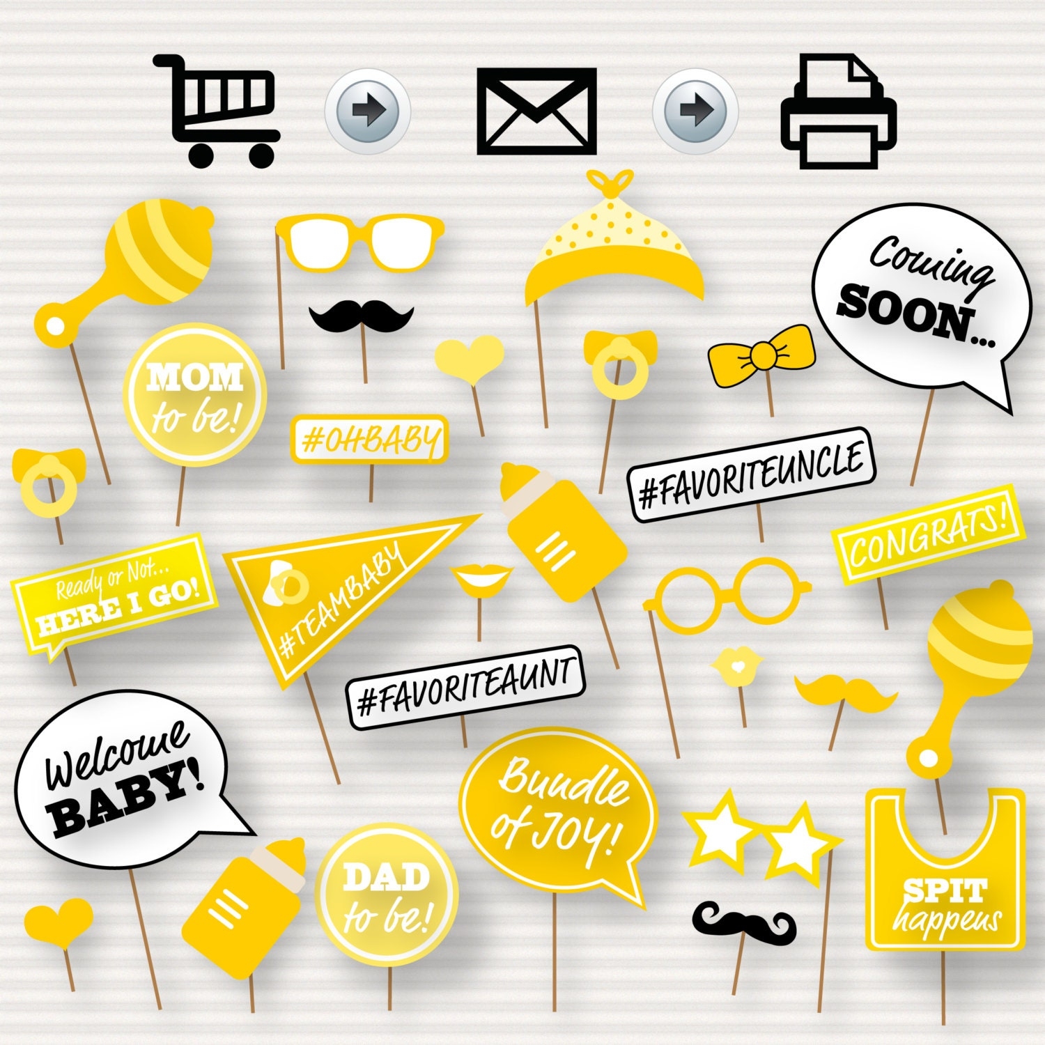 Baby Shower Printable Photo Booth Props Baby Shower Photobooth Props Yellow Baby Shower Printables Gender Neutral Photo Booth neutral Etsy Canada
