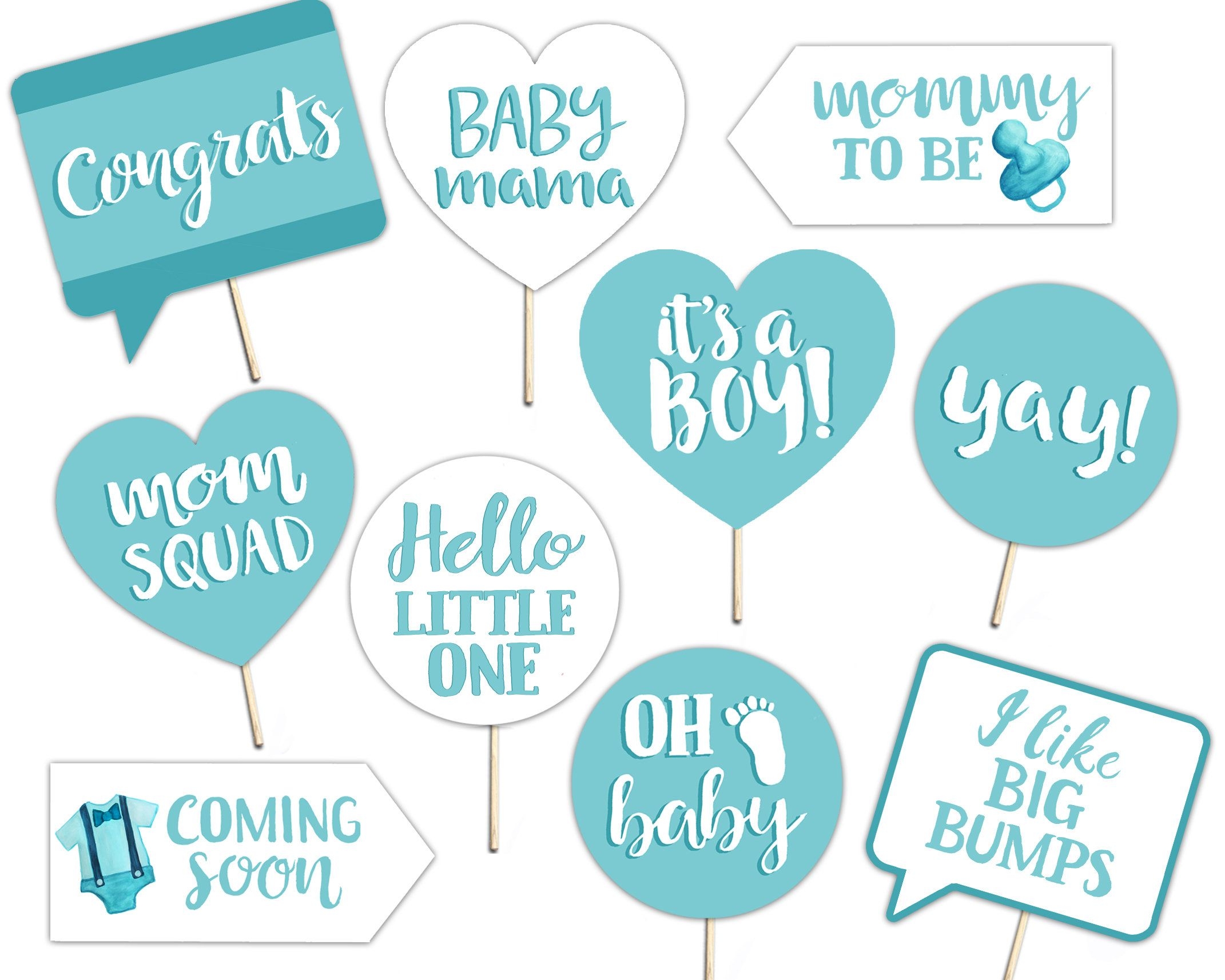 Baby Shower Printable Photo Booth Props Baby Boy Blue And White 10 Hand Painted Signs Etsy