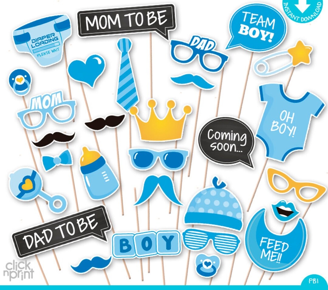 Baby Shower Print Yourself Photo Booth Props Baby Shower Printable Photo Props Set It s A Boy Photobooth Baby Blue Baby Shower Etsy UK