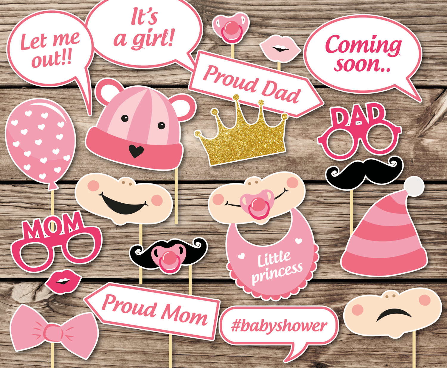 These props are not only a great way to entertain your guests but also make for adorable keepsakes. You can match them to your theme, whether it’s a gender reveal party, safari, or princess theme. Let your creativity shine with these versatile props!