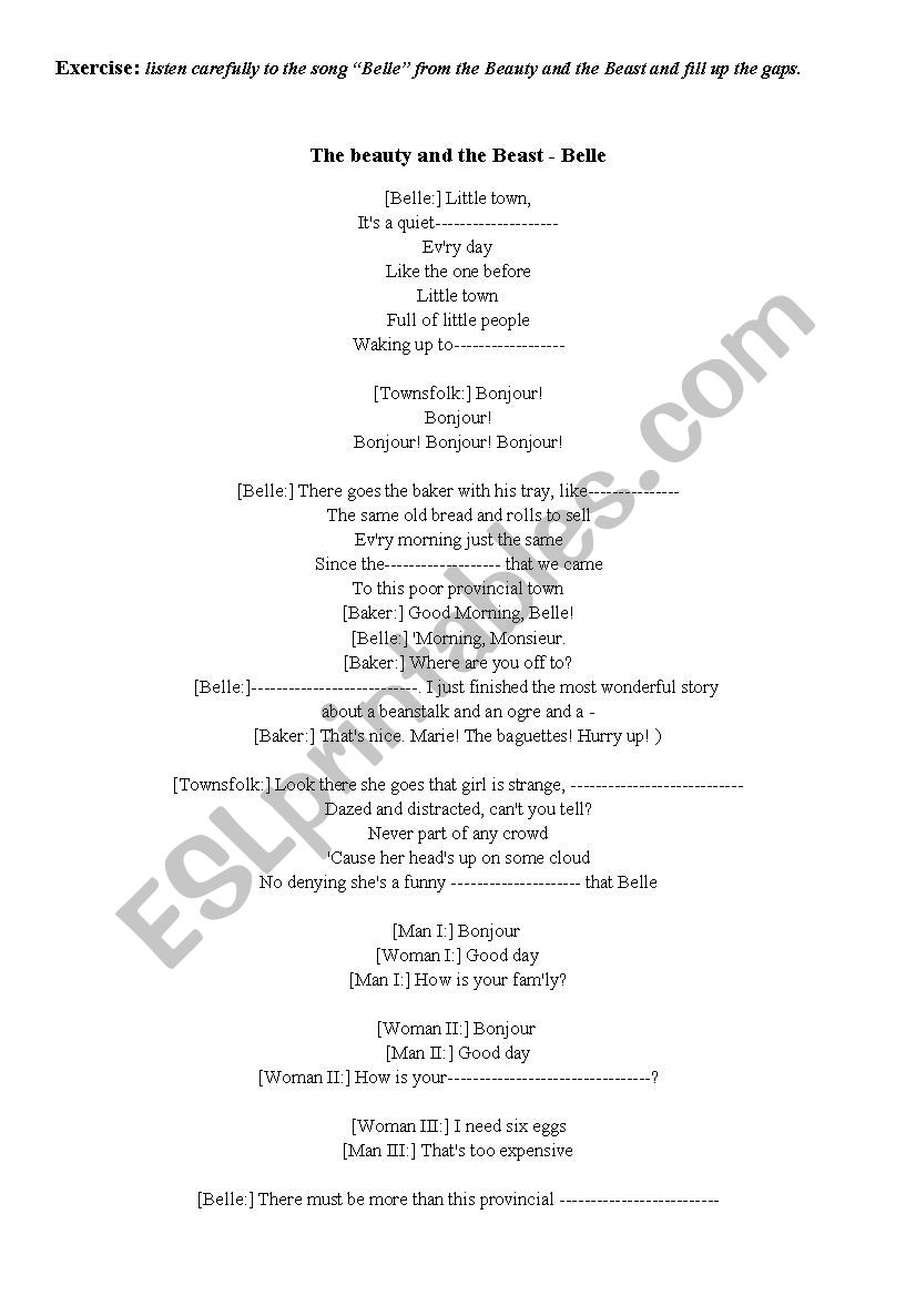 Belle Song From The Beauty And The Beast ESL Worksheet By Caco