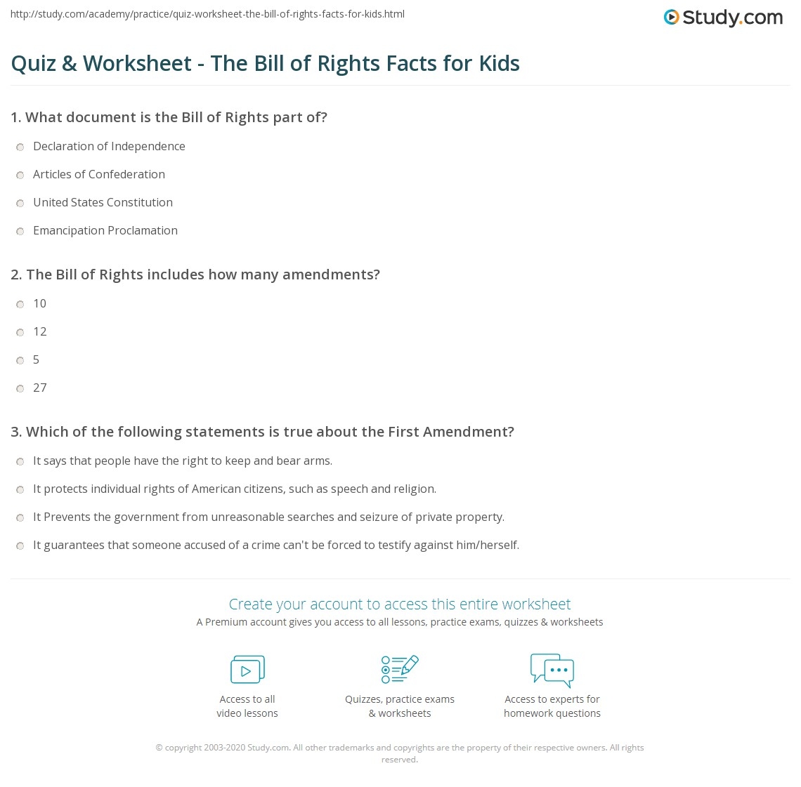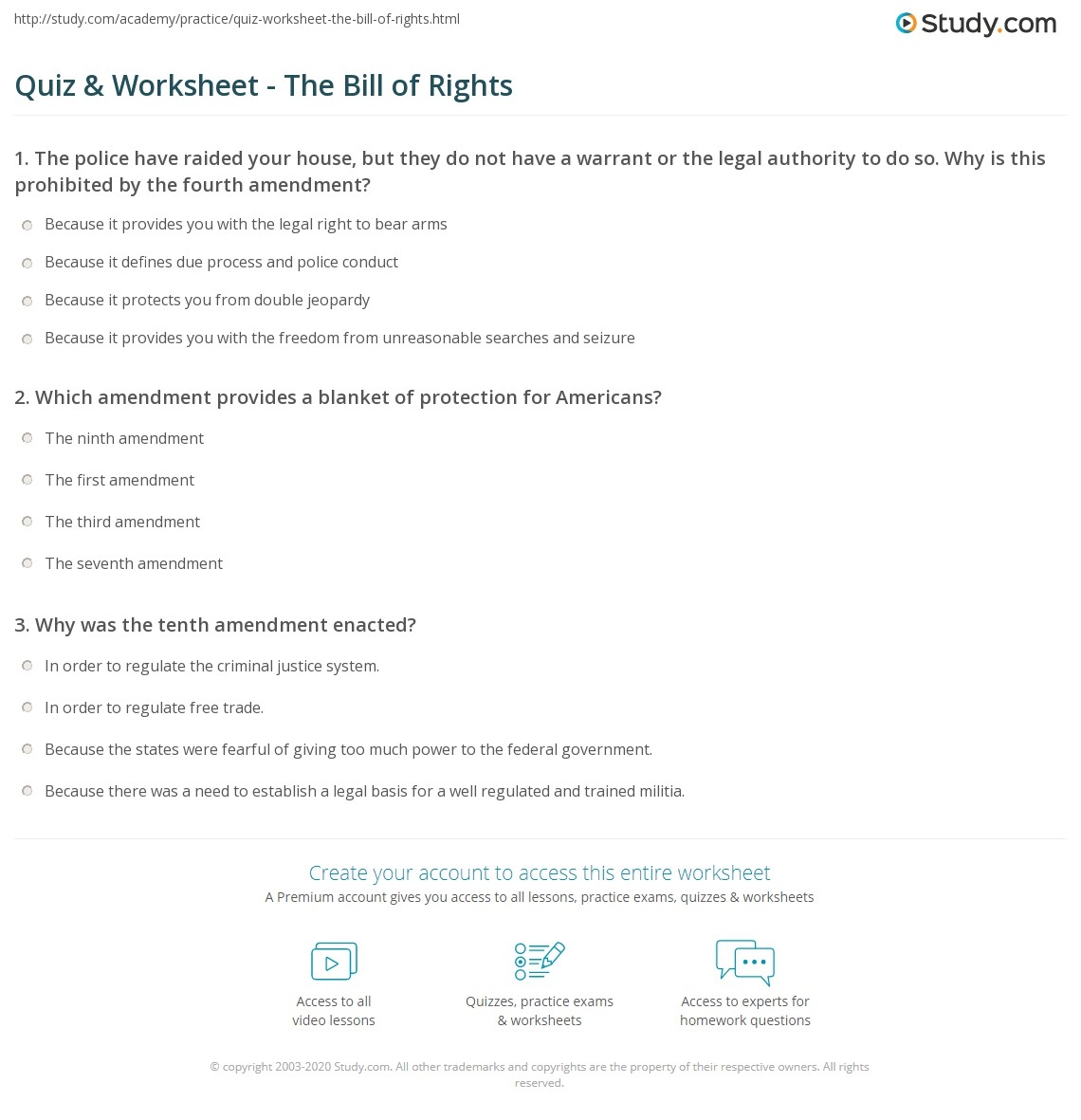 Quiz Worksheet The Bill Of Rights Study