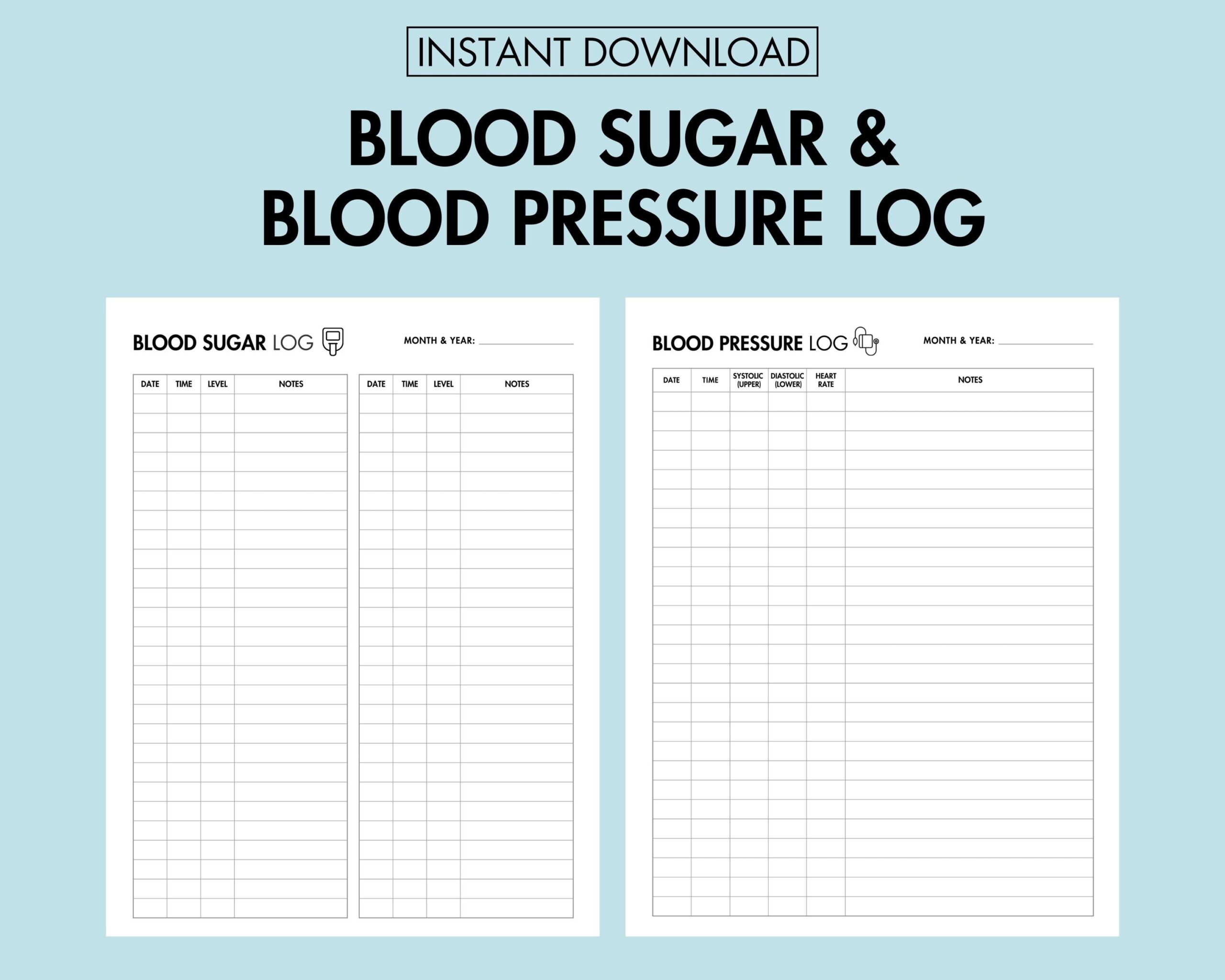 Blood Sugar Log Printable Blood Pressure Log PDF Blood Glucose Tracker Diabetes Management Medical Planner Personal Health Management PDF Etsy