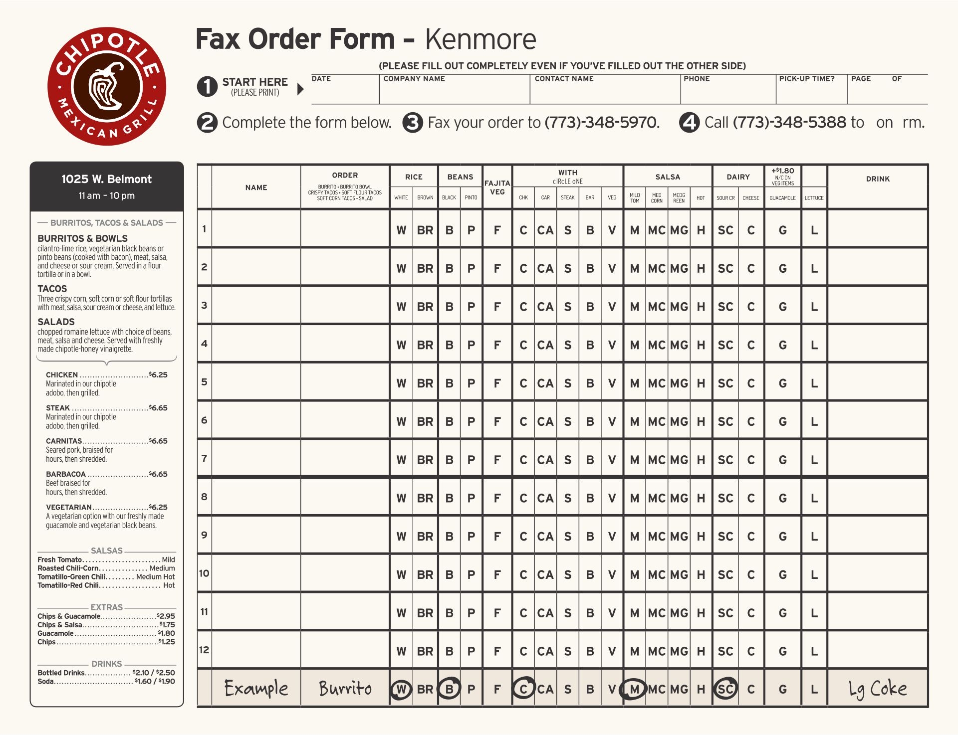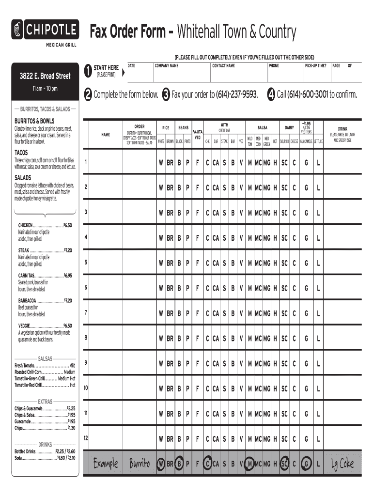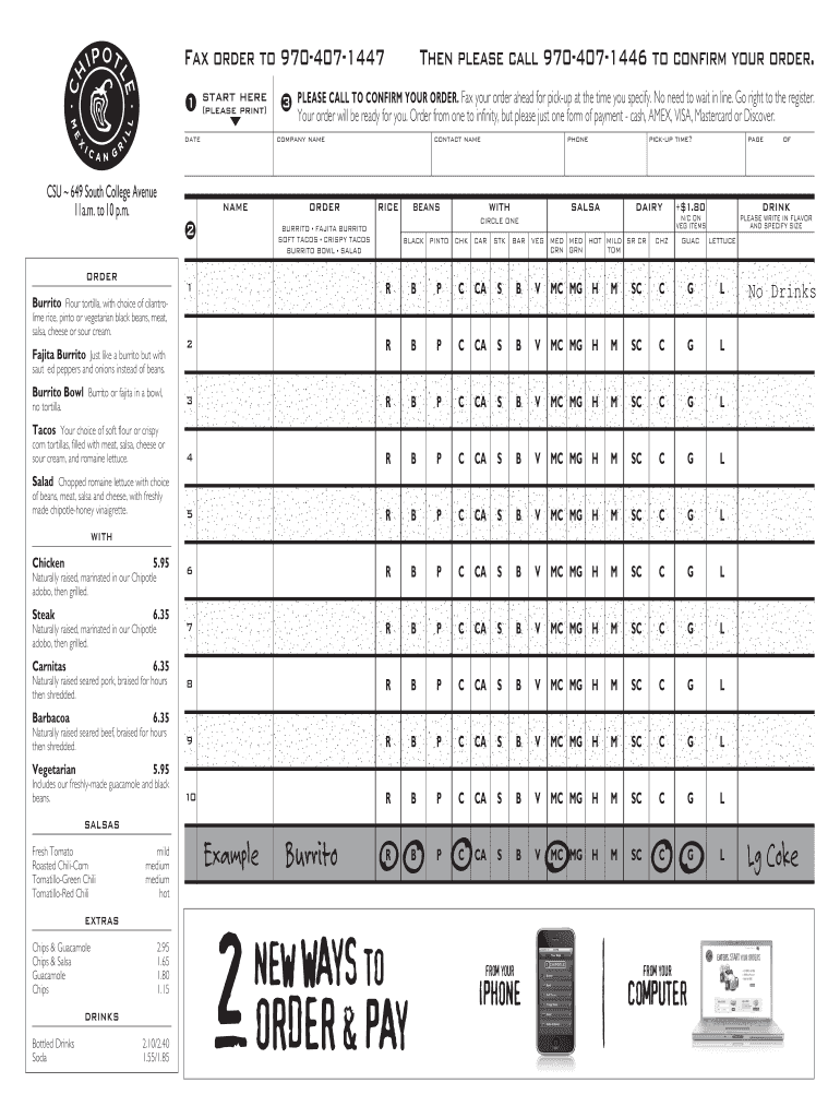Chipotle Menu Printable Order Form
