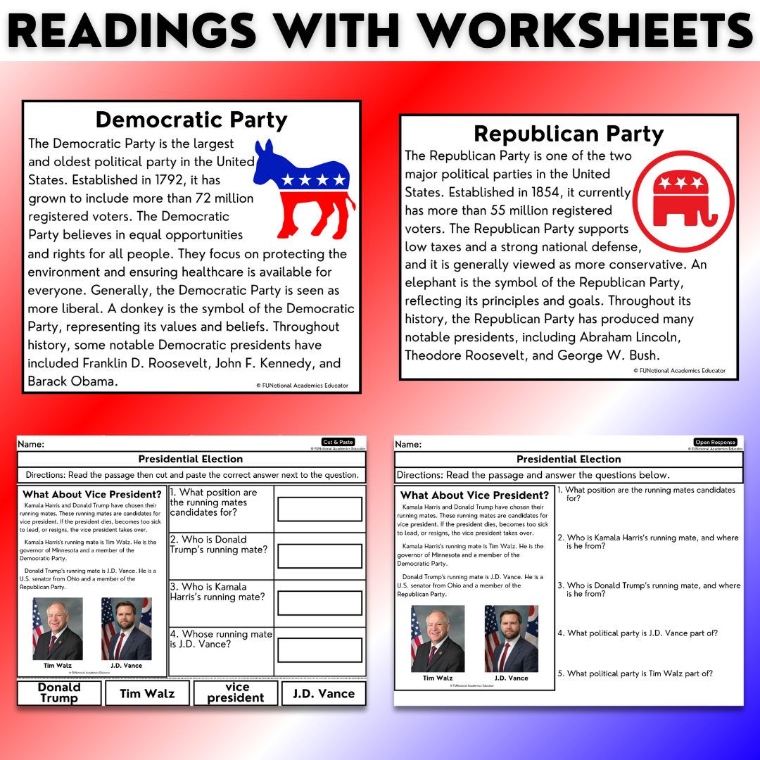 2024 Presidential Election Harris Trump Reading Vocab Worksheets Classful