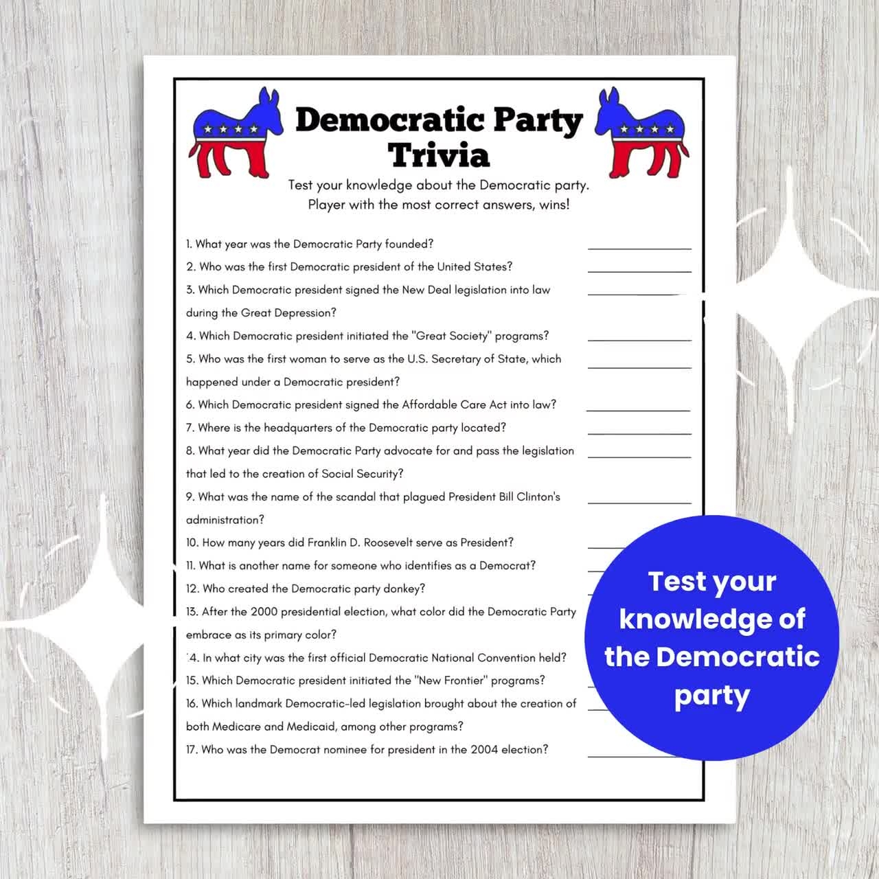 Democratic Party Trivia Game Patriotic Game US Presidents Game Political Game Games For Seniors History Classroom American Trivia Game Etsy