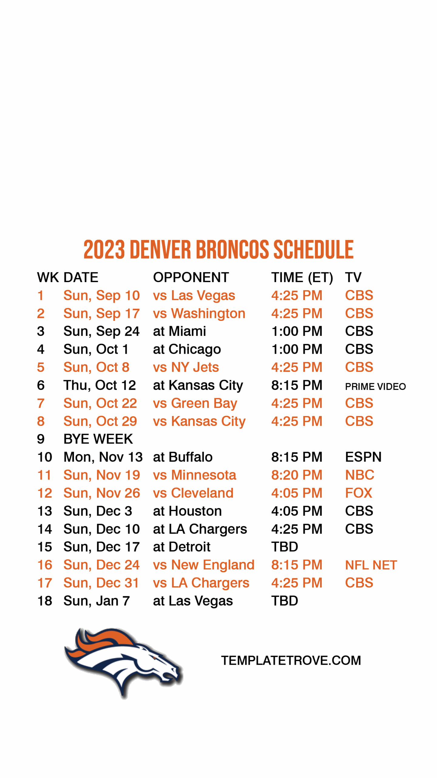 Get your hands on the Denver Broncos Schedule 2025 Printable today and start planning your game days now. Whether you’re watching from home or at the stadium, having the schedule at your fingertips will make this season one to remember. Don’t miss out on a single play – download your printable schedule today!
