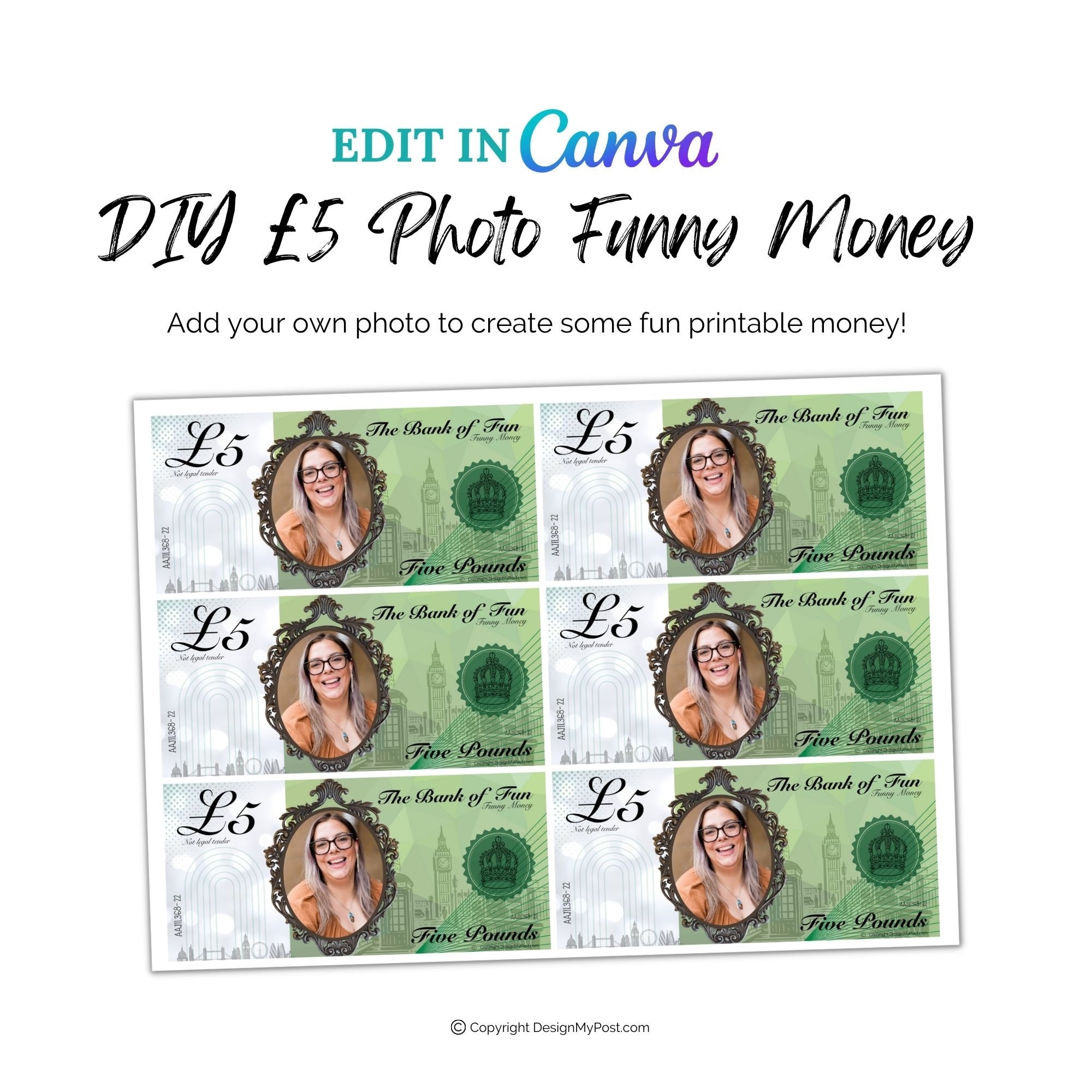 Personalised Face On Money 5 Pound Note Printable Fun Cash Add Photo To Create Play Money Great For Party Nights Casino Nights Birthdays Etsy Canada