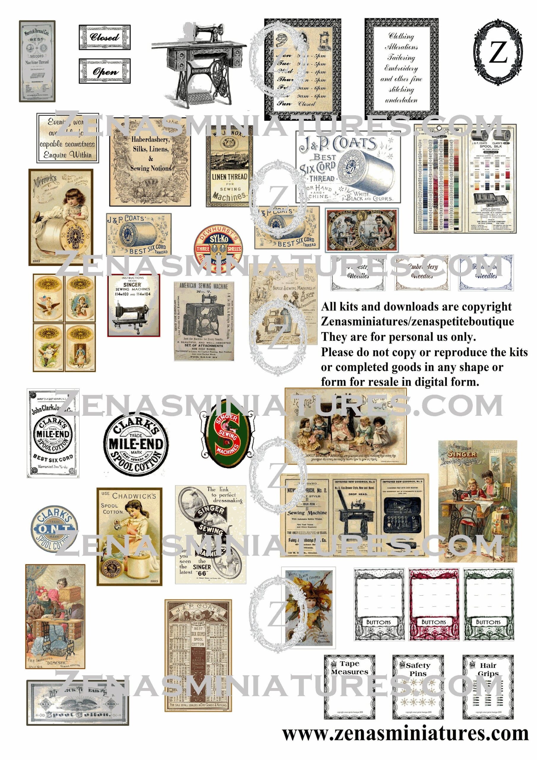 Dollhouse Download Haberdashery sewing Shop Instant Digital pdf printie KIT Miniature 1 12th Posters adverts Etsy UK