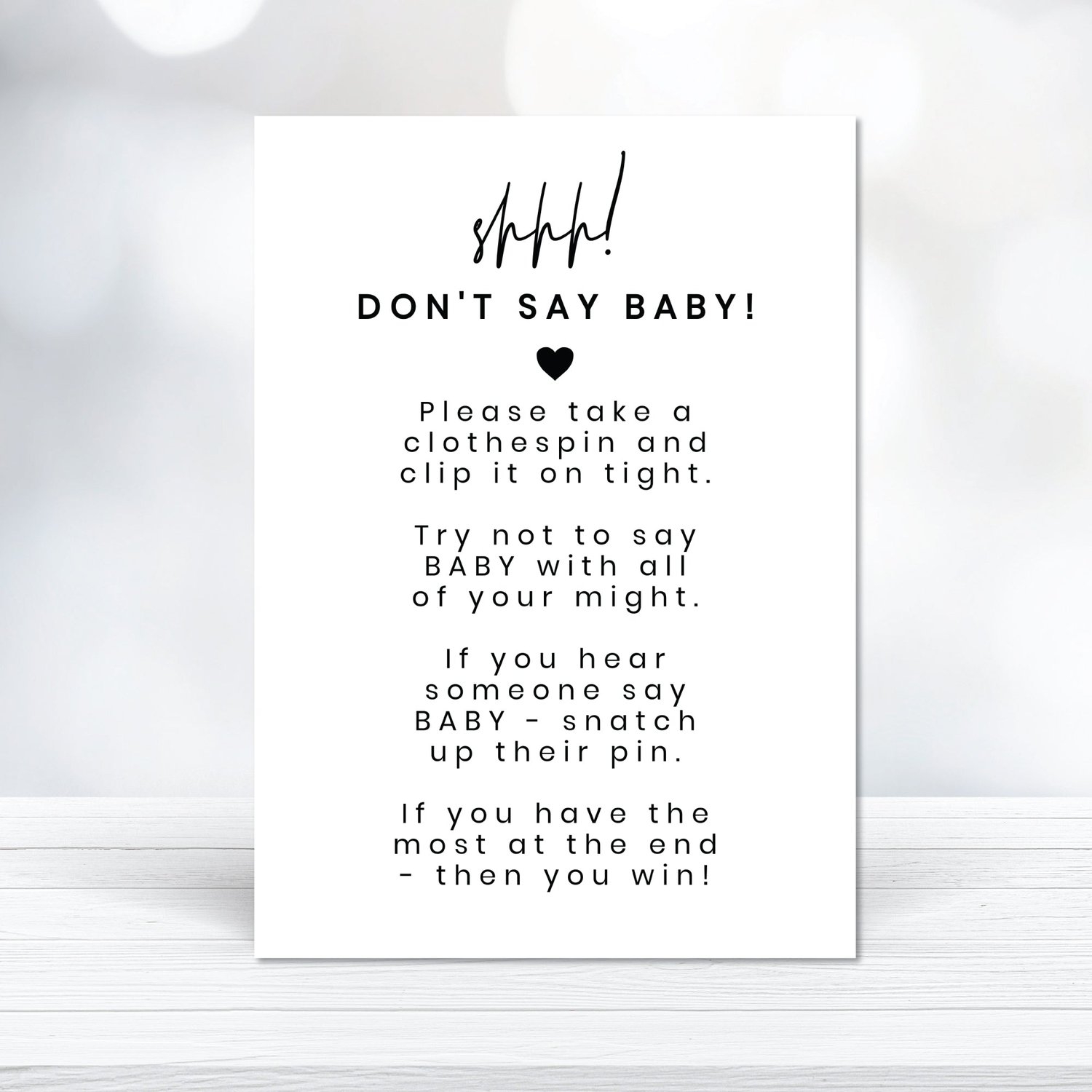 Printable Don t Say Baby Clothespin Baby Shower Game Sign Digital Download