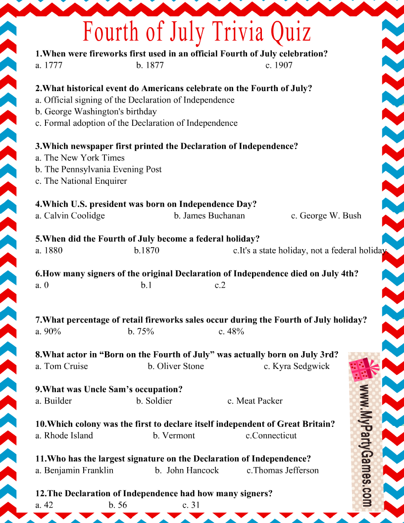 Whether you’re hosting a Fourth of July party or just want to add some fun to your celebrations, these printable quizzes are sure to be a hit. You can even make it a friendly competition by dividing into teams and seeing who can answer the most questions correctly.