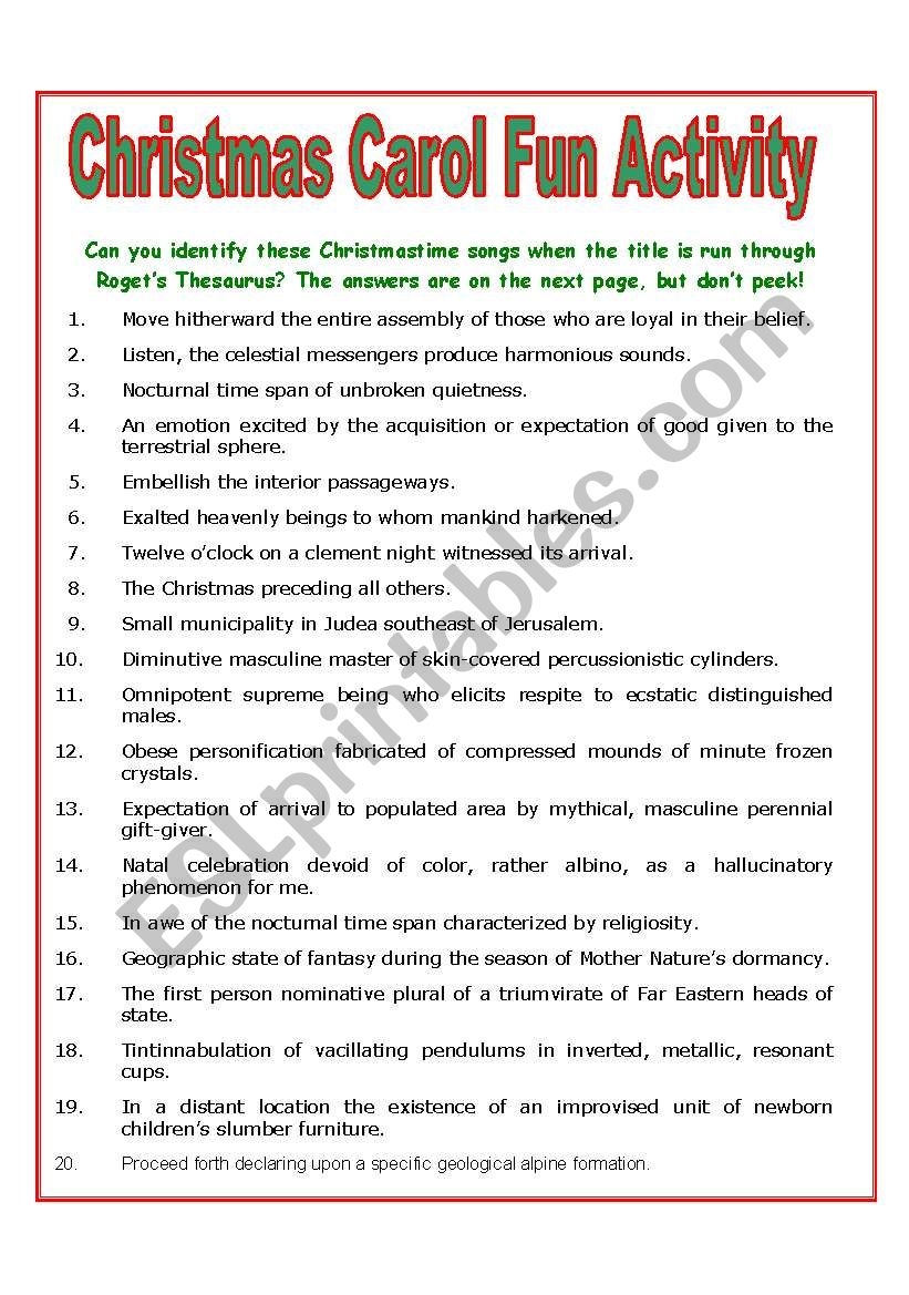Free Printable Christmas Carol Worksheets