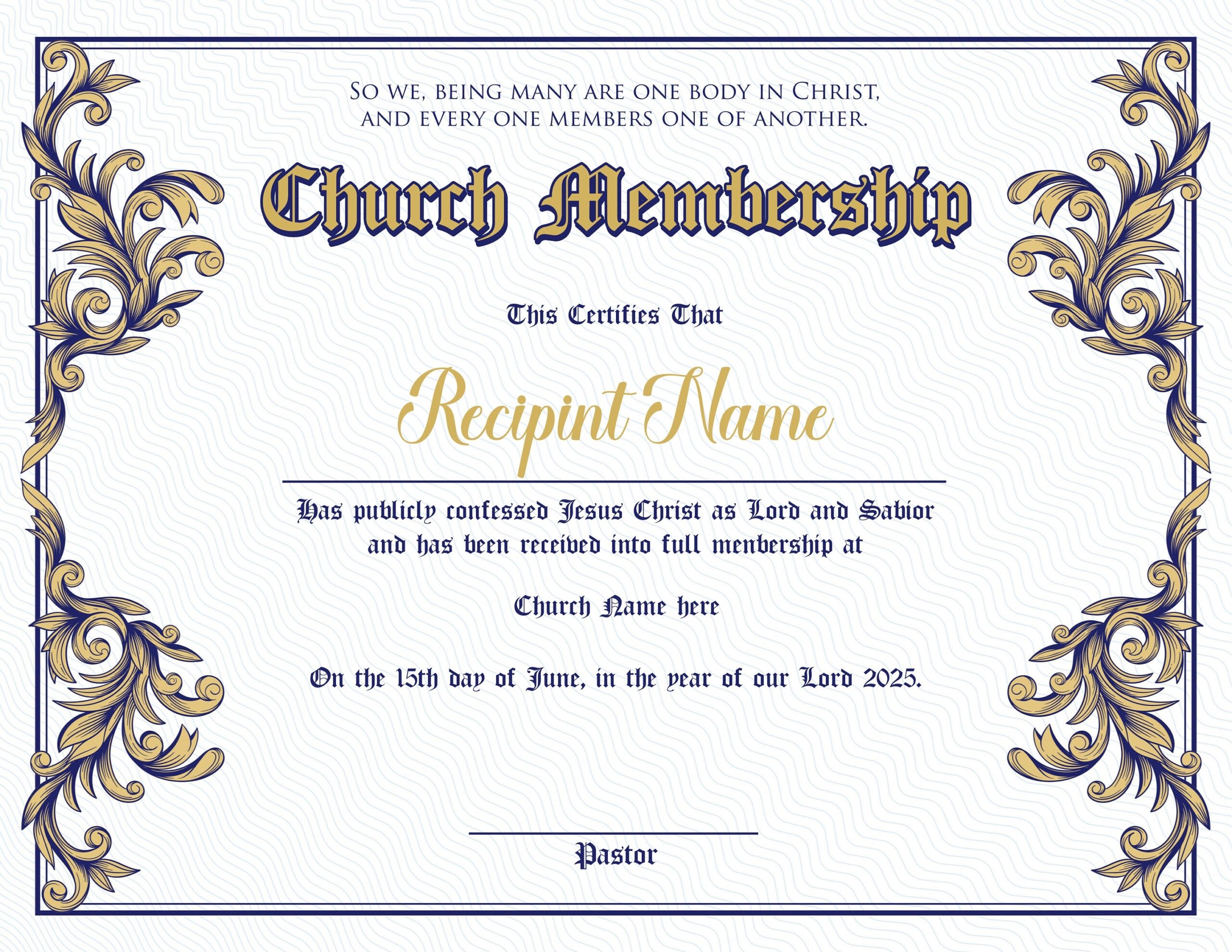 These certificates are a great way to acknowledge the hard work and involvement of your congregation members, whether they are long-time attendees or new additions to your church family.
