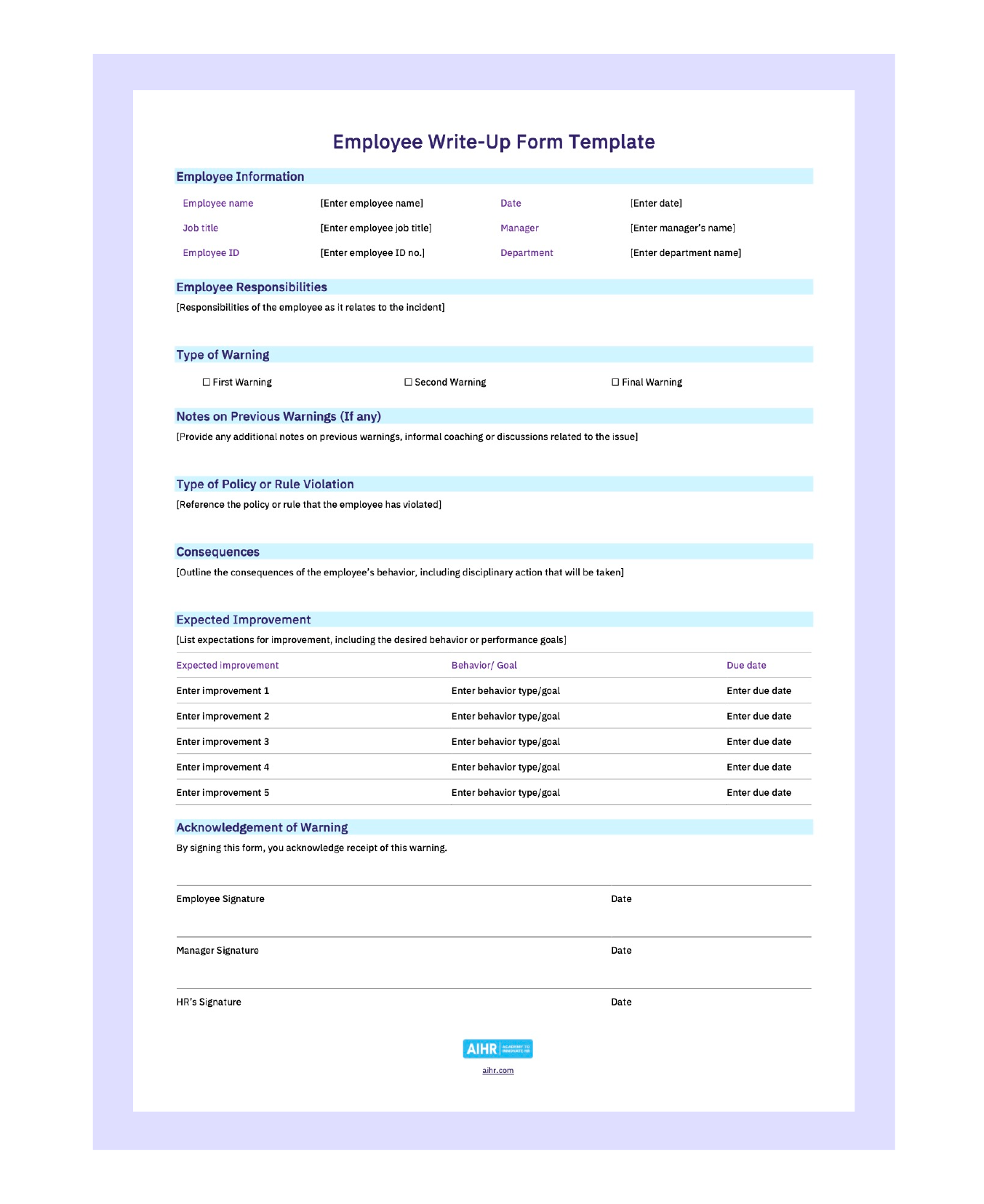 Free Employee Write Up Forms And Templates Download Print In Office GDocs
