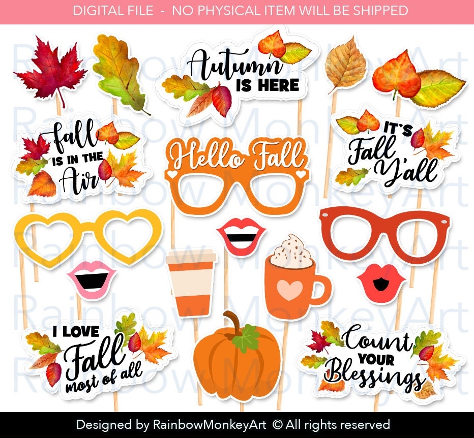 Printable Fall Photo Booth Props Fall Wedding Photobooth Props Fall Festival Fall Photobooth Props Etsy
