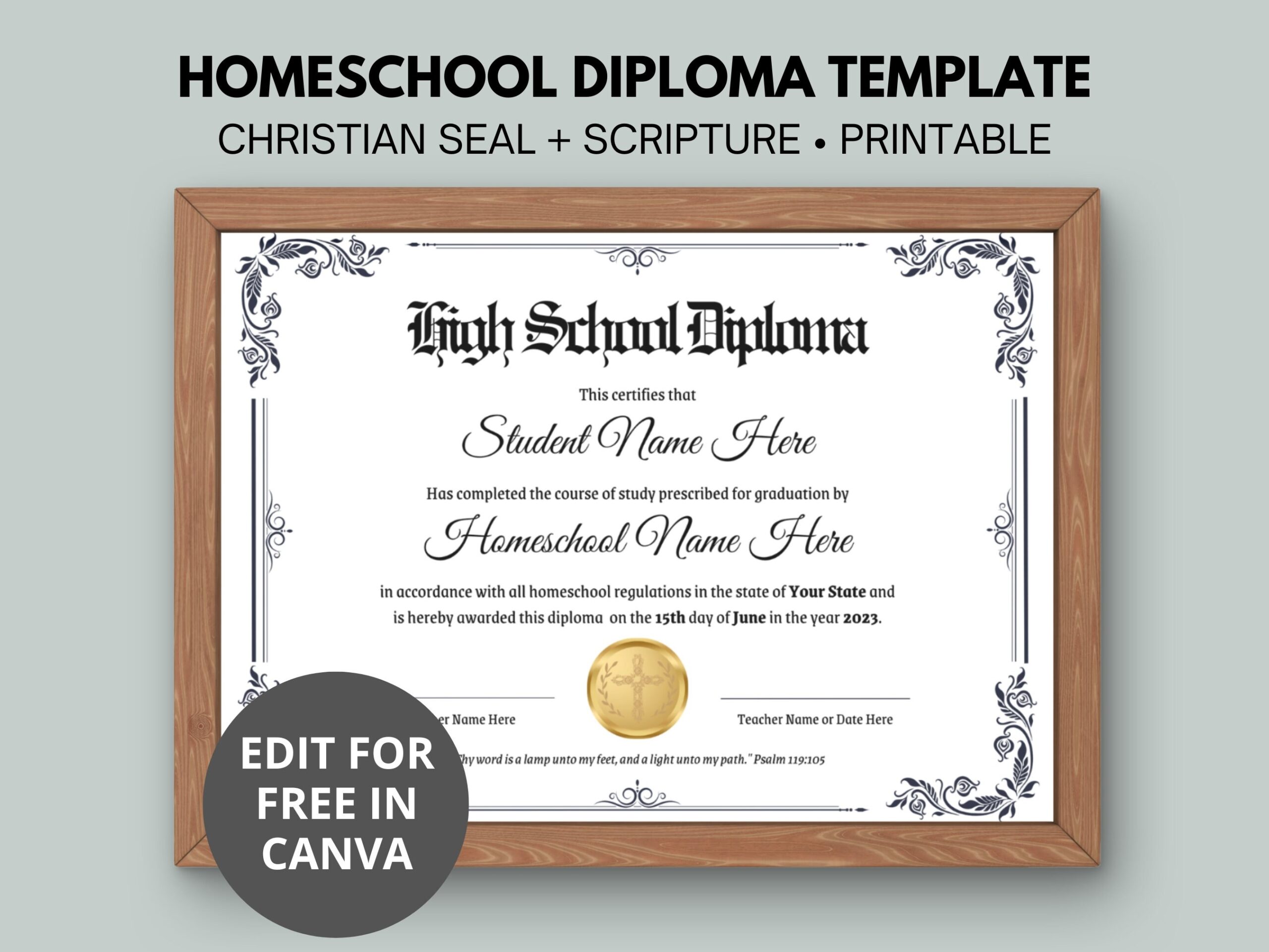 Homeschool Diploma With Gold Seal Printable Home School High School Graduation Certificate Editable Instant Download Digital File Template Etsy New Zealand