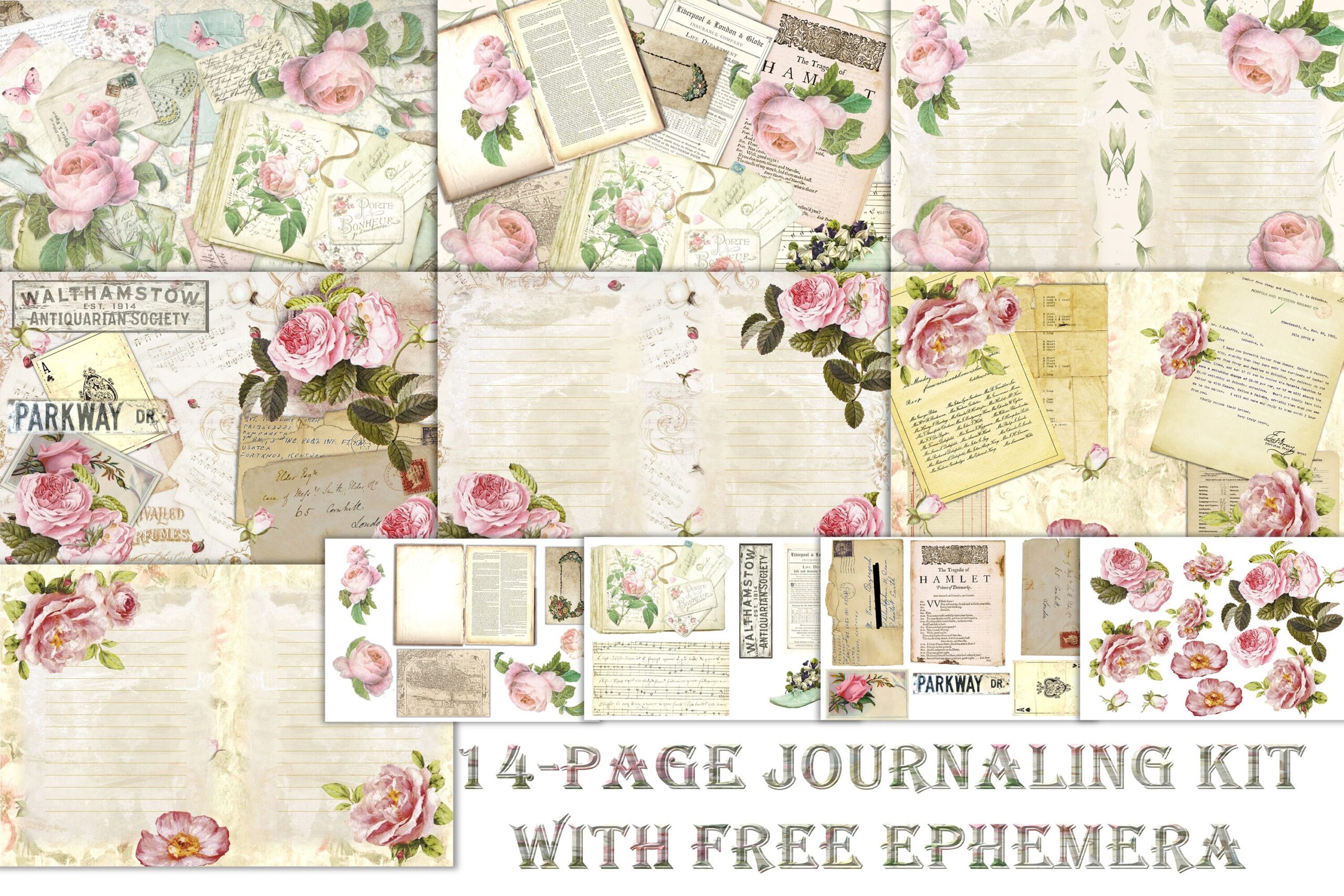 Printable Junk Journal With FREE Ephemera And Clipart Commercial Use By The Paper Princess TheHungryJPEG