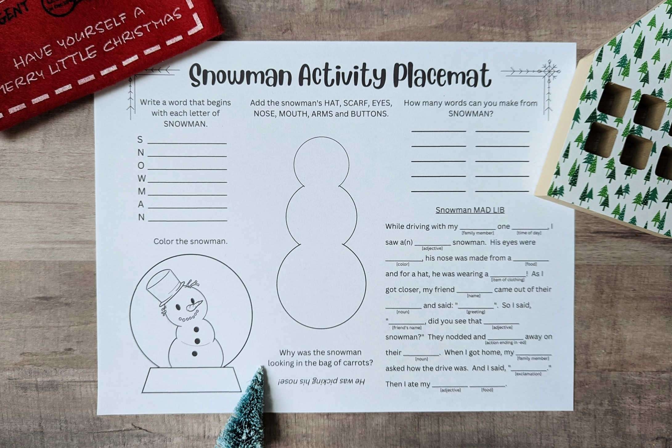 Kids Snowman Activity Placemat Sunshine And Munchkins