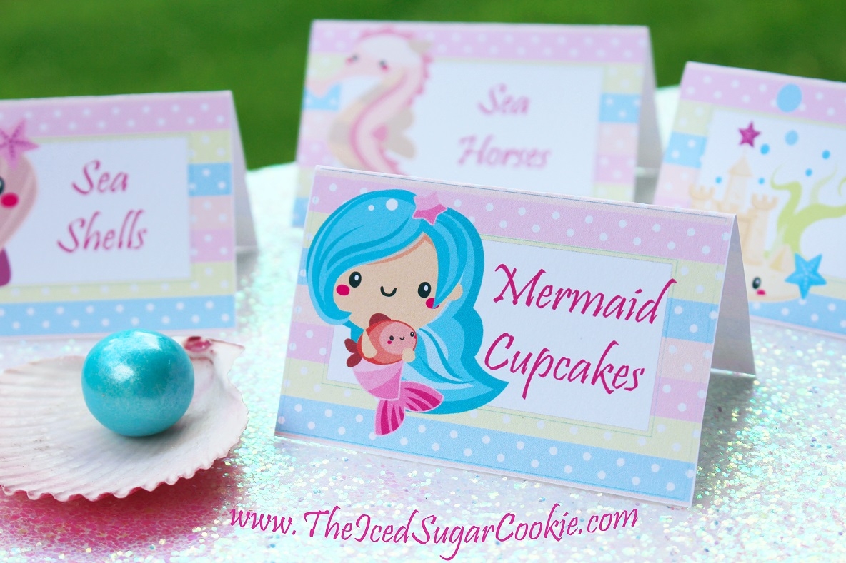 DIY Birthday Blog DIY Mermaid Birthday Party Free Printable Mermaid Food Tent Cards Cupcake Toppers Banner Garland