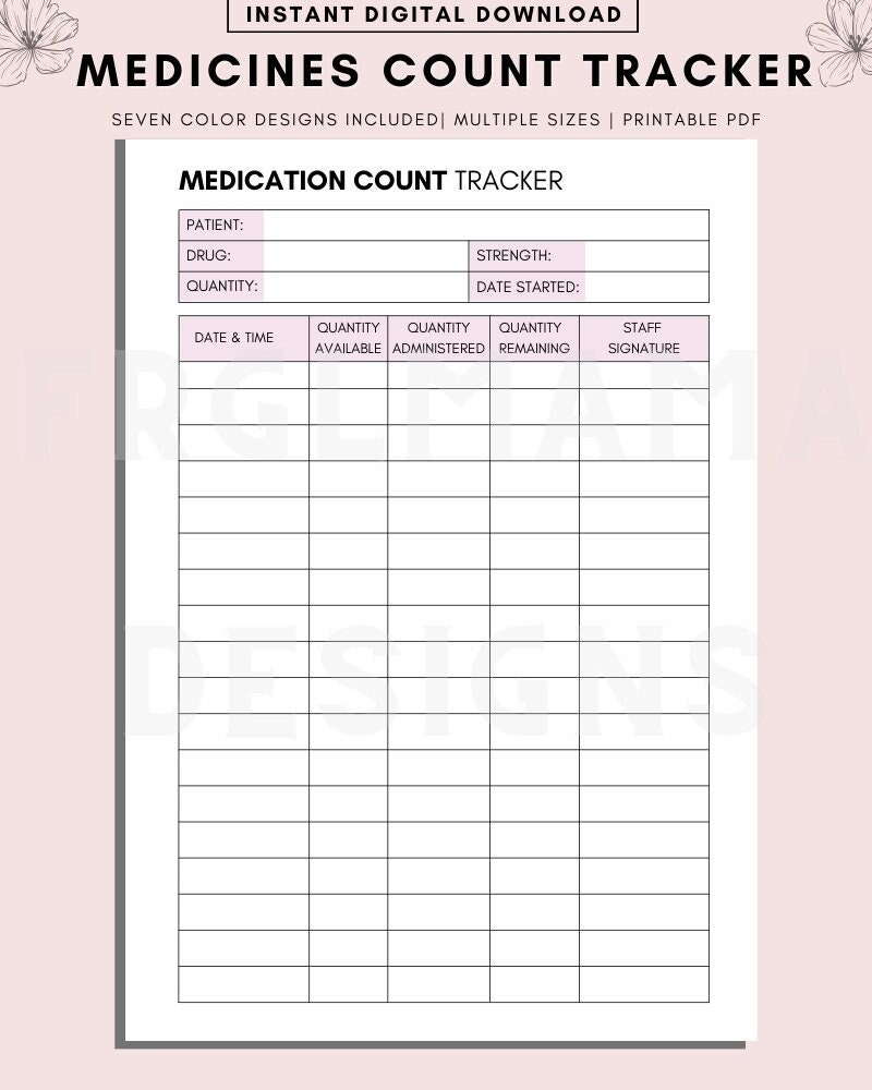 Medication Count Tracker Printable Medication Tracker Medication Log Daily Medication Sheet Medication List Printable Instant Download Etsy