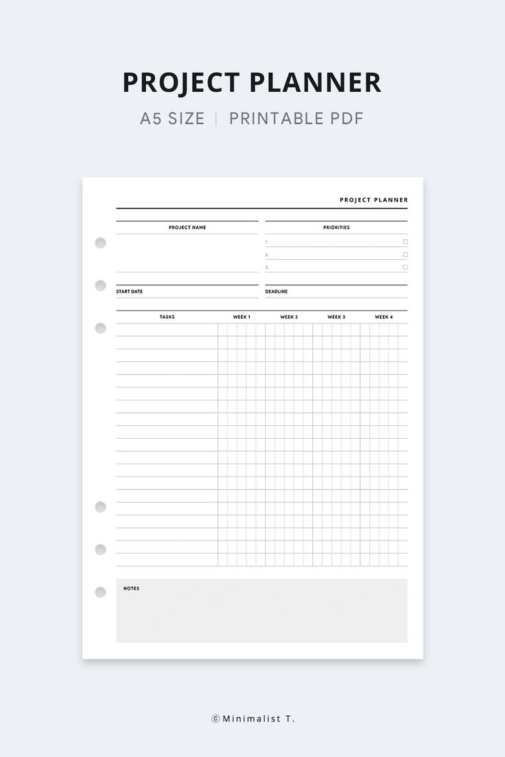A5 Project Planner Printable Work Productivity Plan Project Schedule Management Template Page