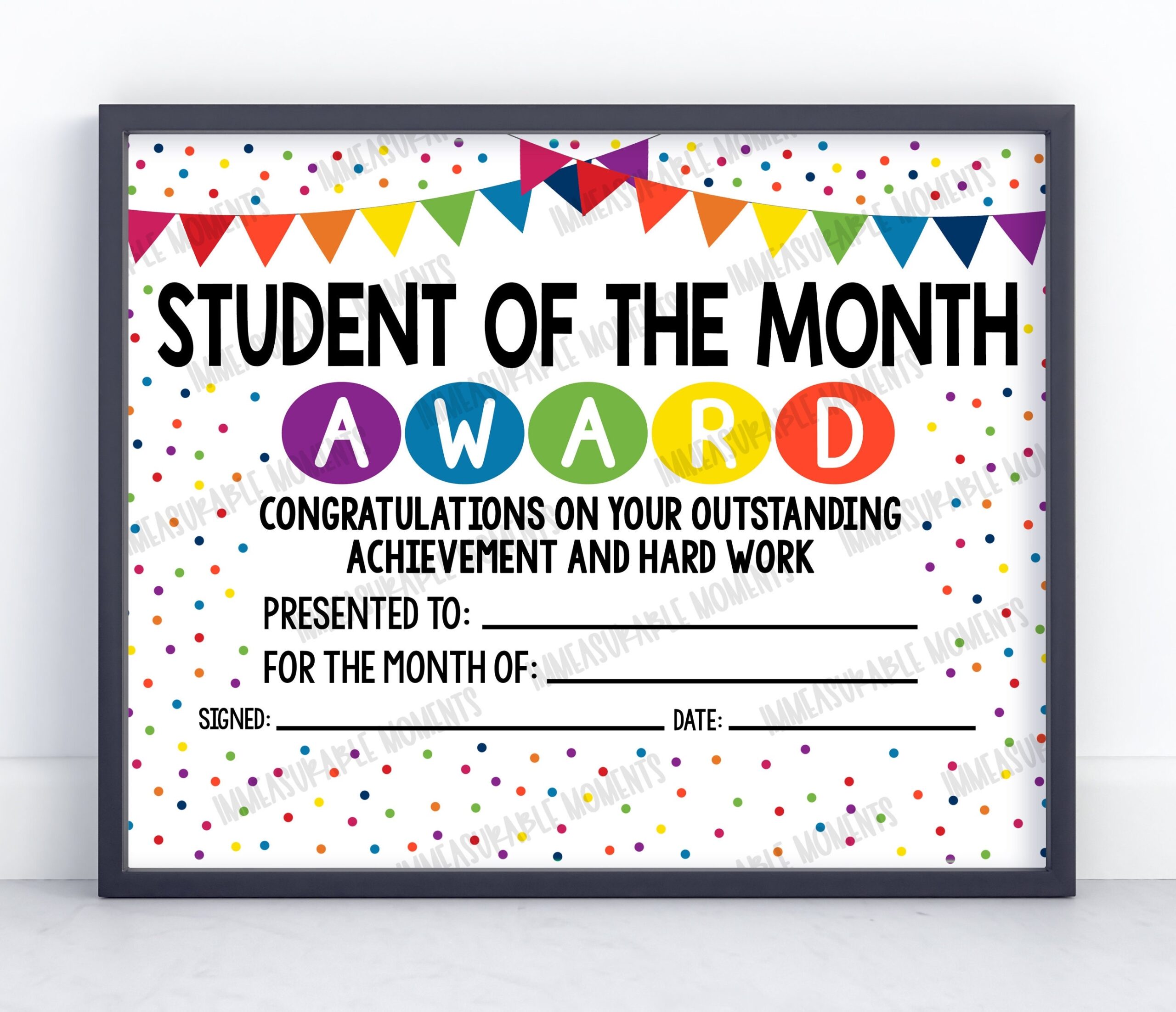 Student Of The Month Award Certificate Colorful Dots Etsy UK