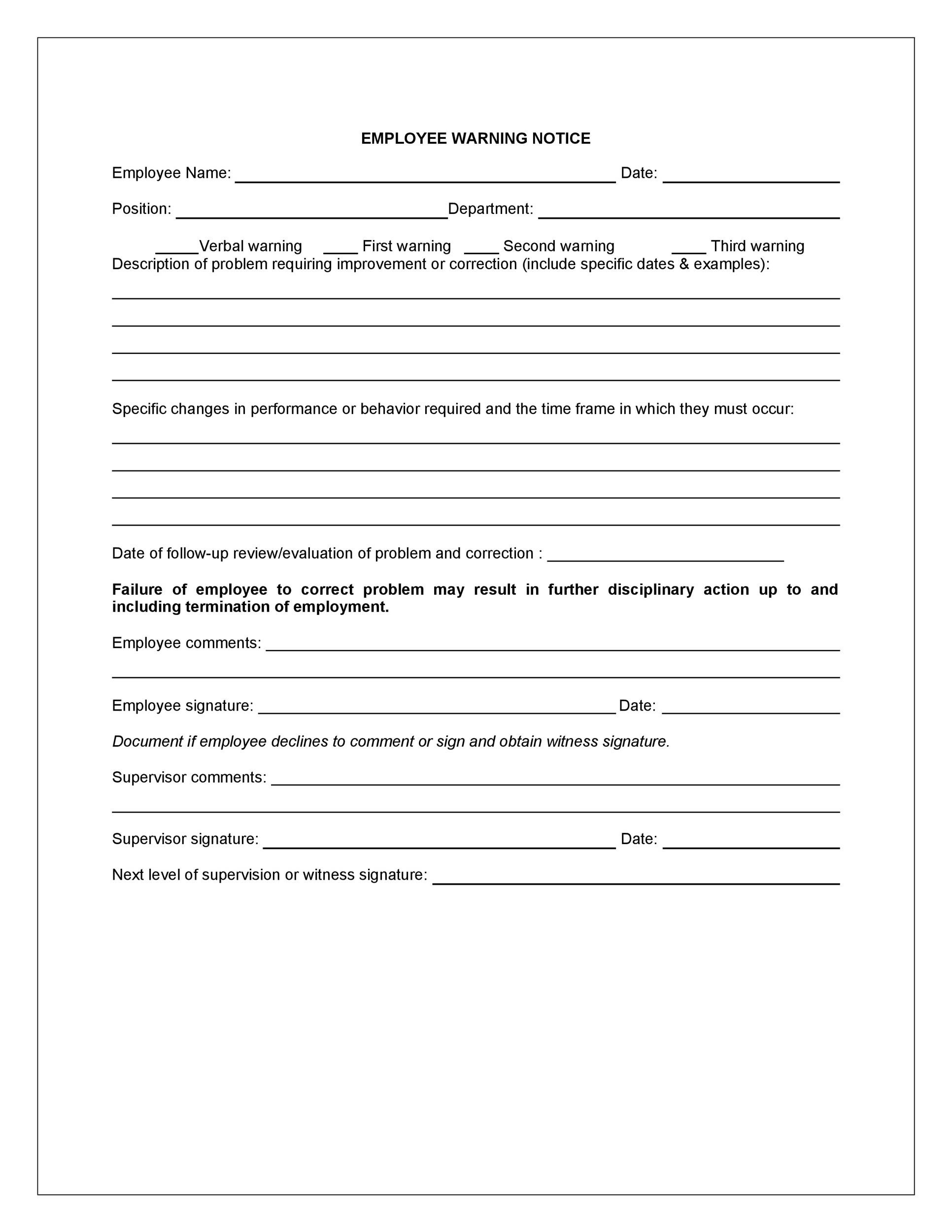 By using a verbal warning form, you can ensure that the employee is aware of the issue and has a chance to improve. It also protects you as an employer by documenting the conversation and any actions taken to address the problem.