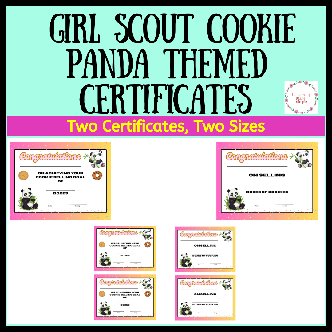 Girl Scout Panda Themed Cookie Certificates Troop Leader