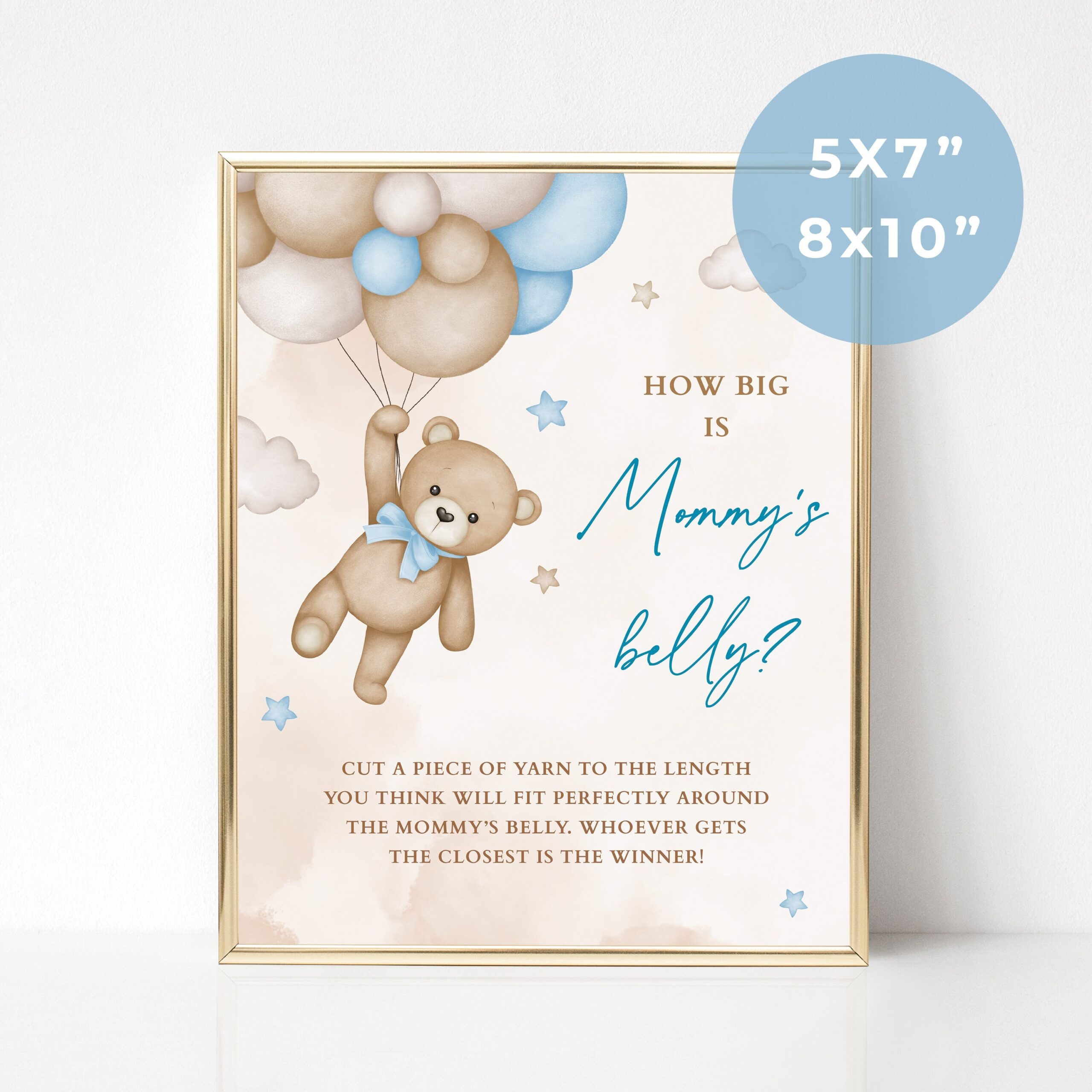 Blue Bear Baby Shower How Big Is Mommy s Belly Game Blue Baby Sprinkle Game Printable Sign And Tickets Etsy