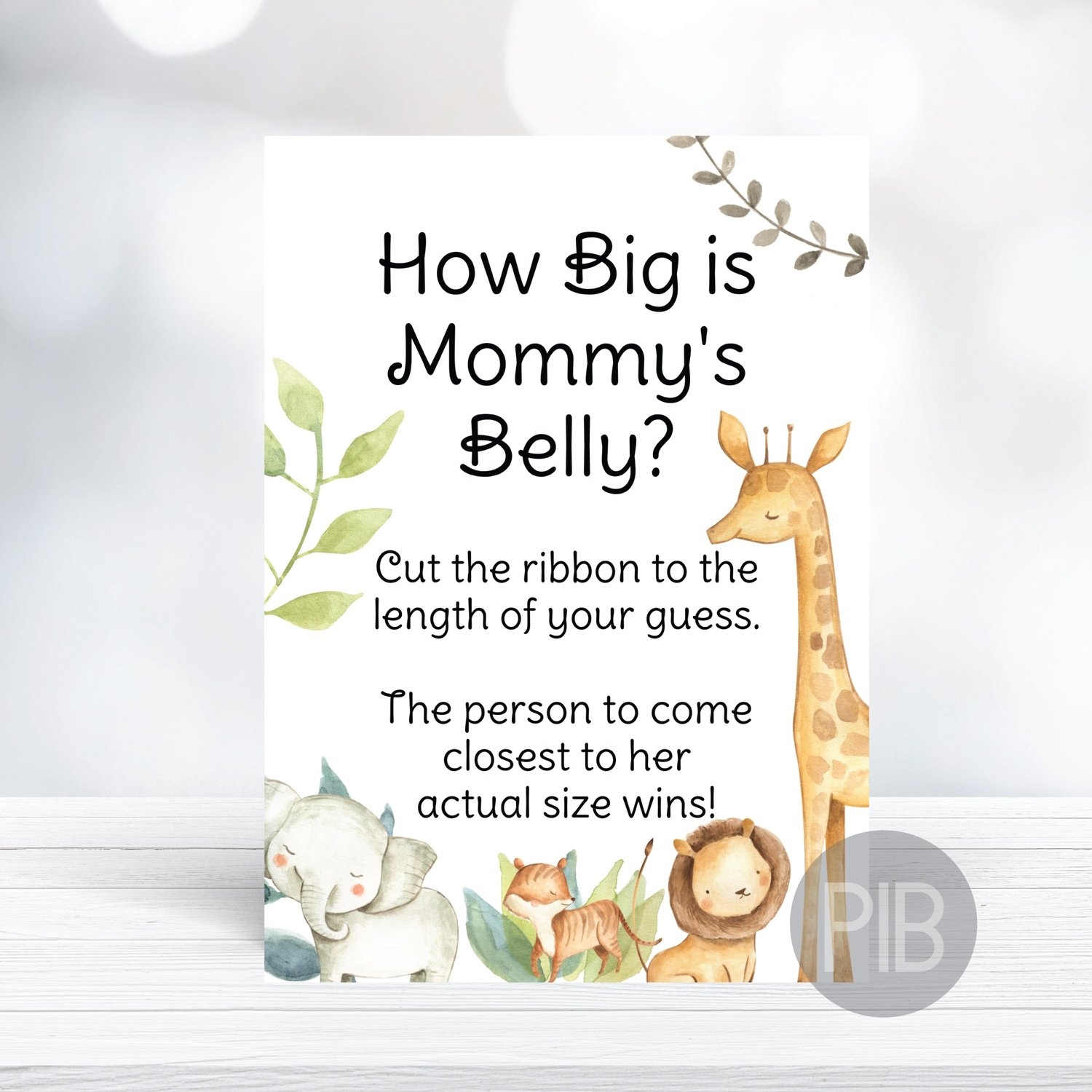 Printable How Big Is Mommy s Belly Jungle Animals Baby Shower Game Sign