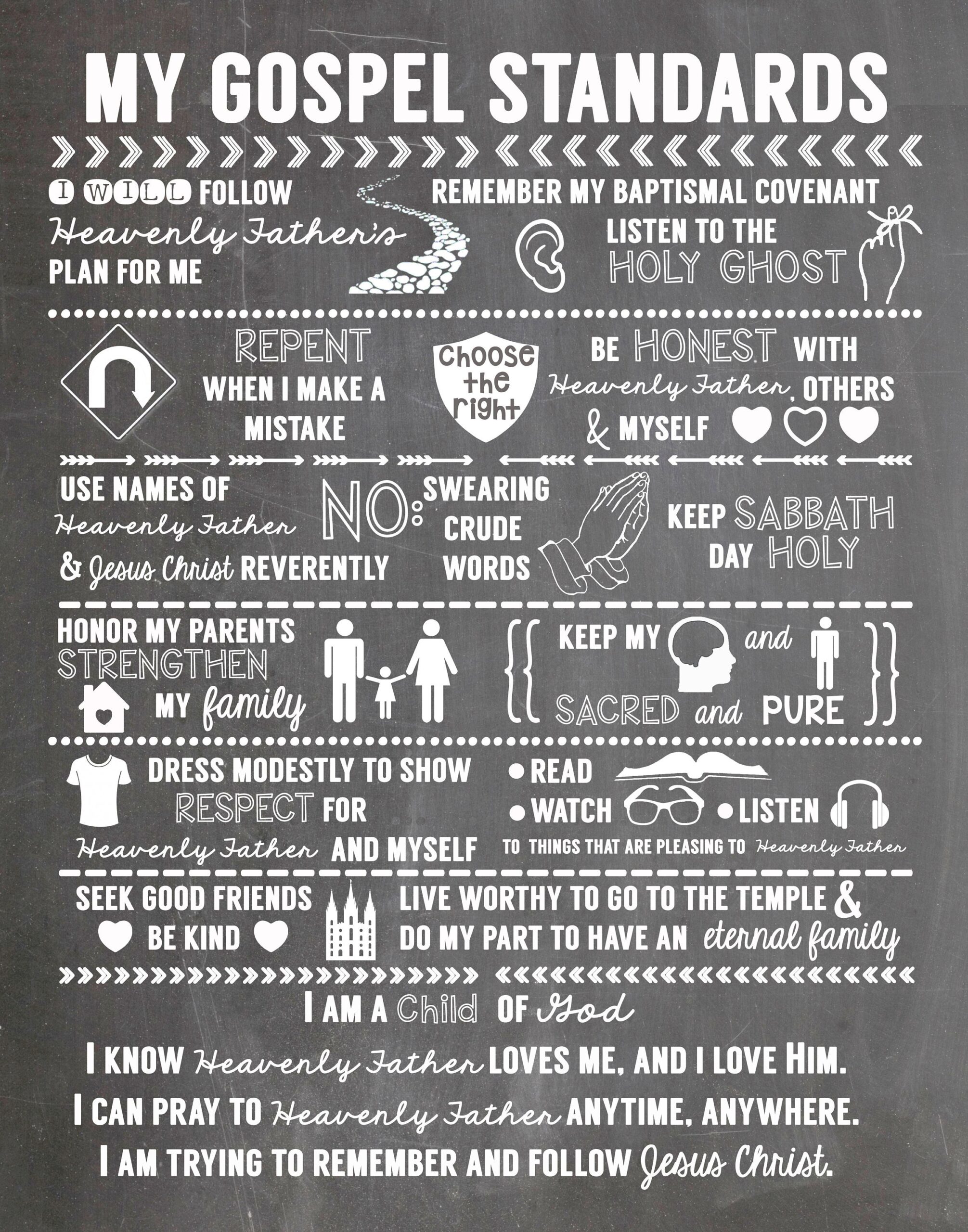 My Gospel Standards LDS Primary Excerpts Fun Chalkboard Print Etsy