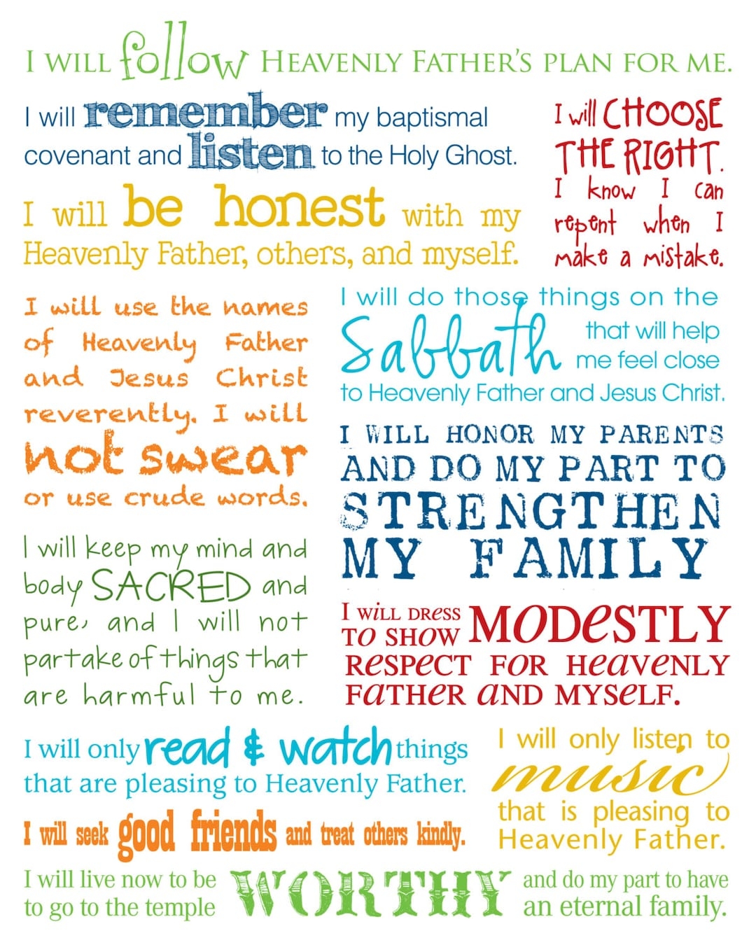 Lds gospel Standards multiple Size Choice Printable black Text baptism Gift mormon activity Days scouts Etsy