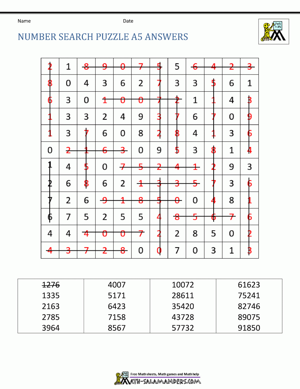 Number Search Puzzles