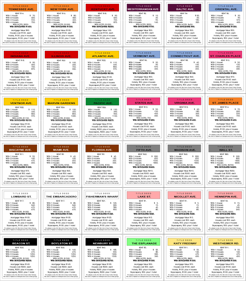 Monopoly Property Cards 10 Free PDF Printables Printablee