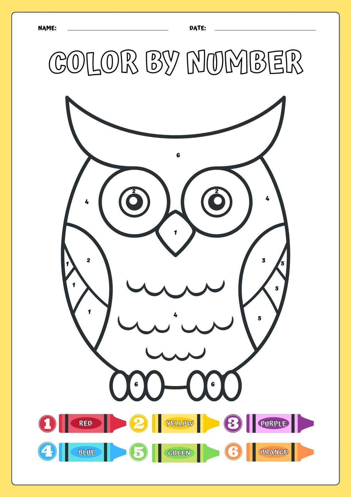 Color By Number Game For Kids Coloring Page With A Cute Owl At Worksheets Library