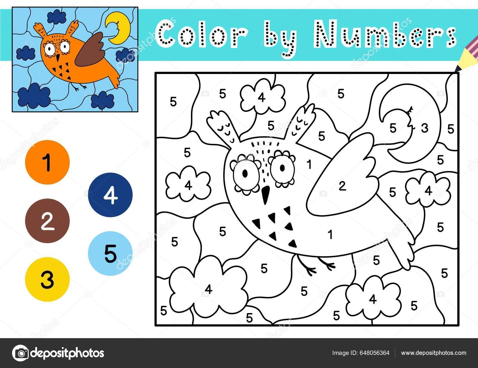 Color By Number Education Game For Children Owl Royalty Free SVG Cliparts Vectors And Stock Illustration Image 59235488