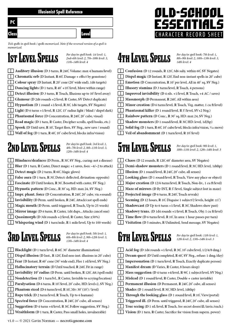 Old School Essentials Druid And Illusionist Spell Tracker Necrotic Gnome Old School Essentials DriveThruRPG