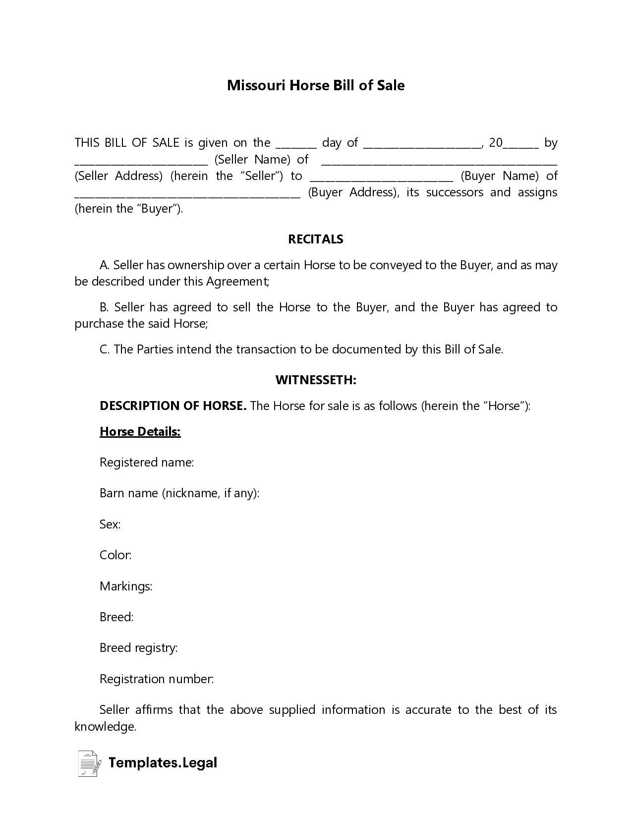 Missouri Bill Of Sale Templates Free Word PDF ODT