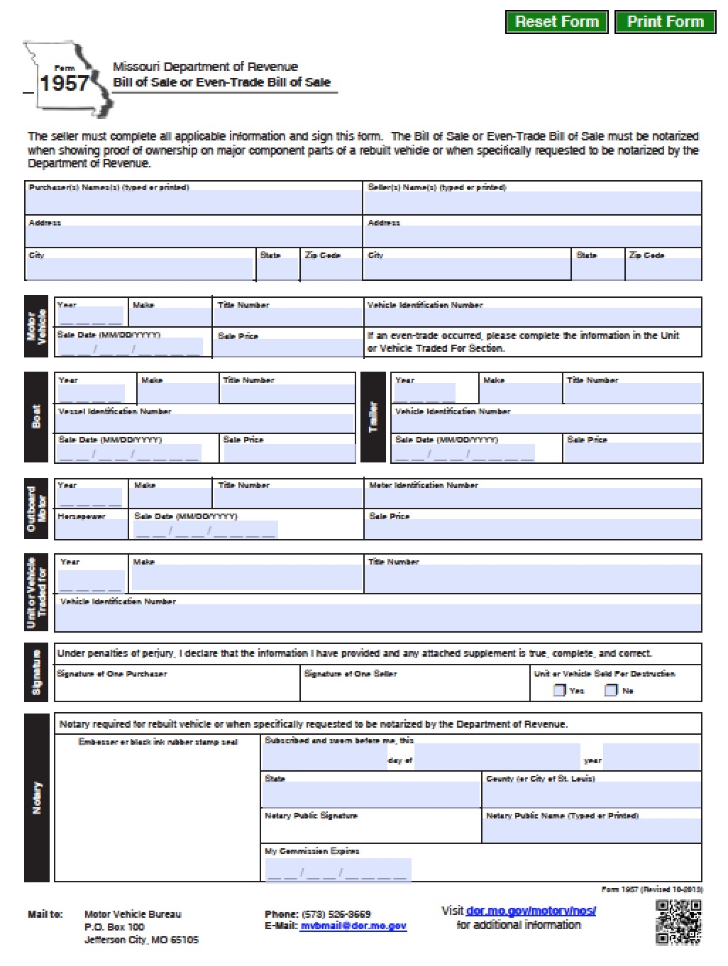 Free Missouri DMV Vehicle Boat Bill Of Sale Form PDF Word doc
