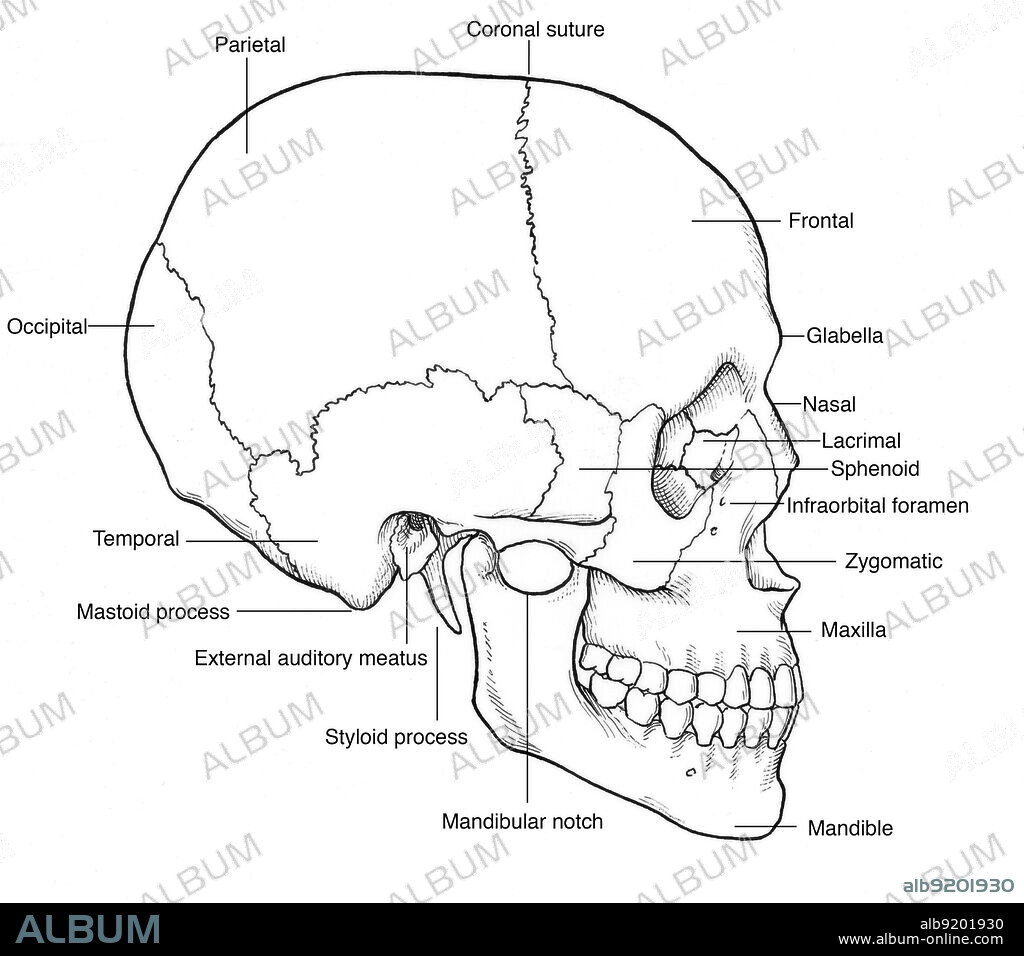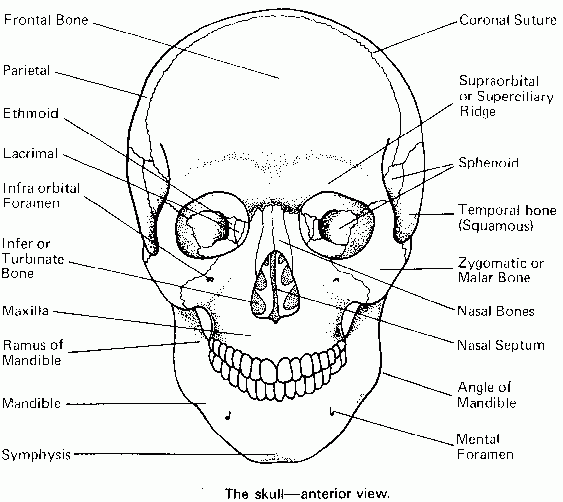 There are many resources available online where you can find and download printable diagrams of the human skull. These diagrams are often labeled with the names of each bone and detail the various structures such as the orbits, nasal cavity, and mandible.