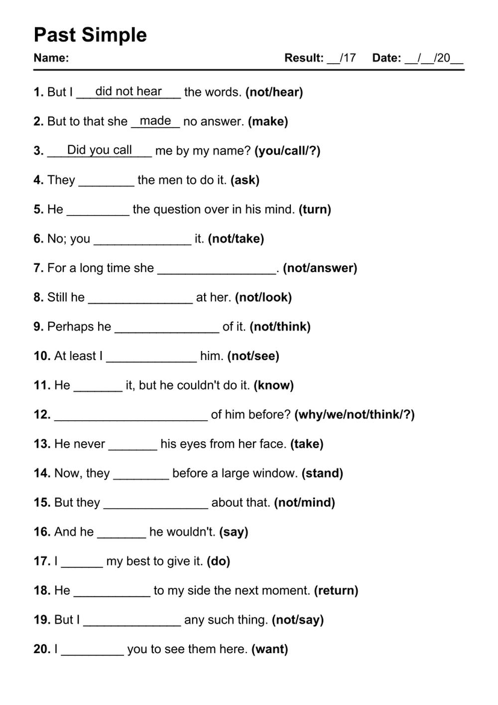 Printable English Grammar Exercises With Answers