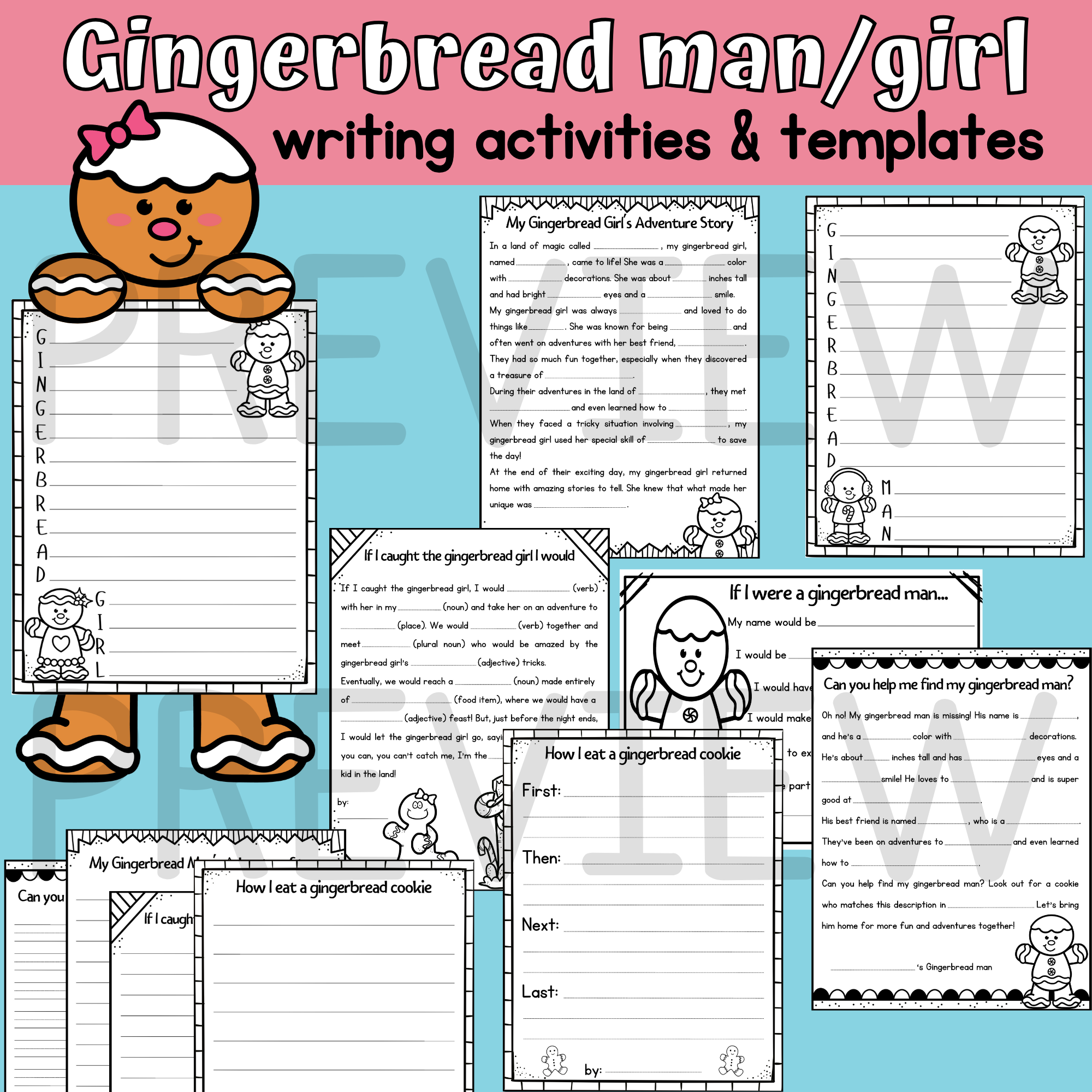 Gingerbread Man And Girl Writing Activities Writing Prompts Templates Craft Made By Teachers
