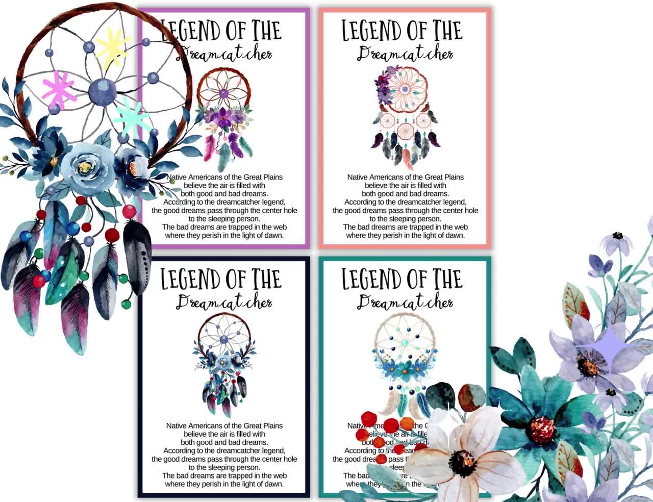 The Legend Of The Dreamcatcher Cards Printable Dream Catcher Cards Gift Tags With Dreamcatchers Display Cards Meaning Of The Dreamcatcher Etsy Canada