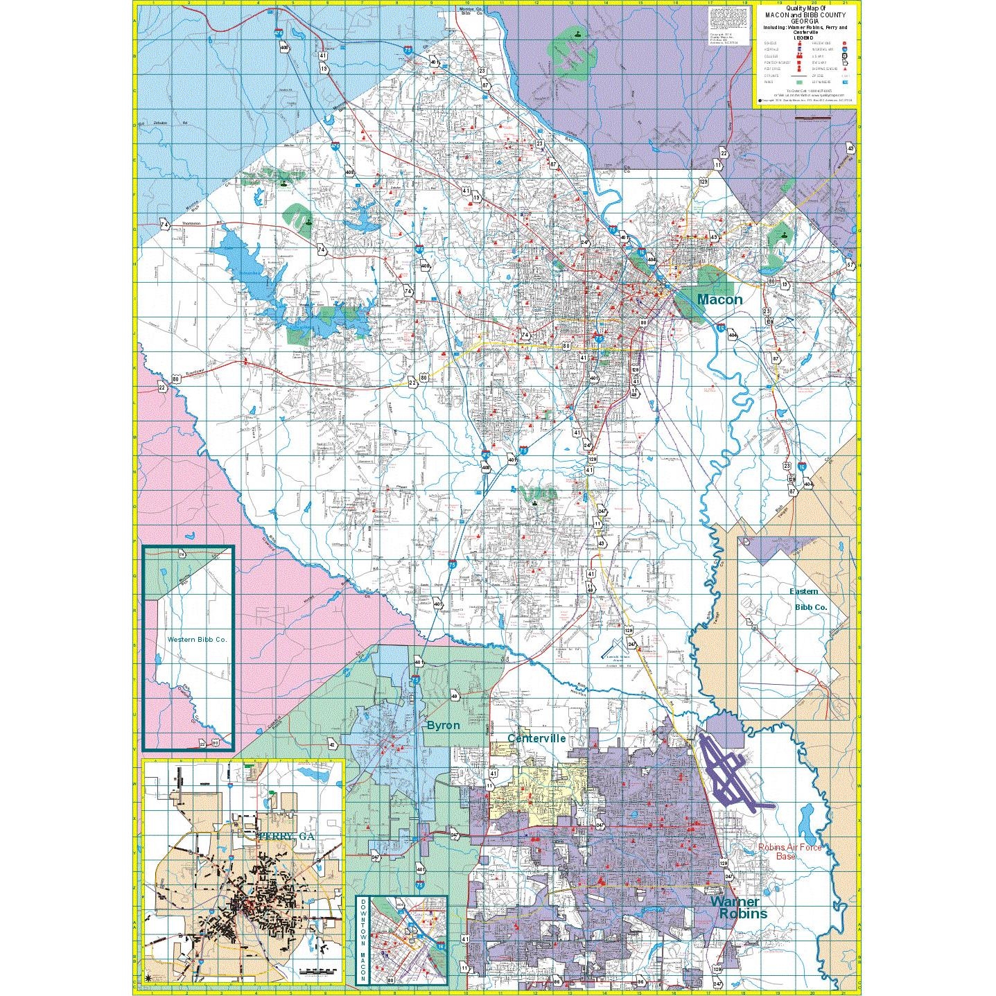 Macon Warner Robins GA Wall Map By Kappa The Map Shop