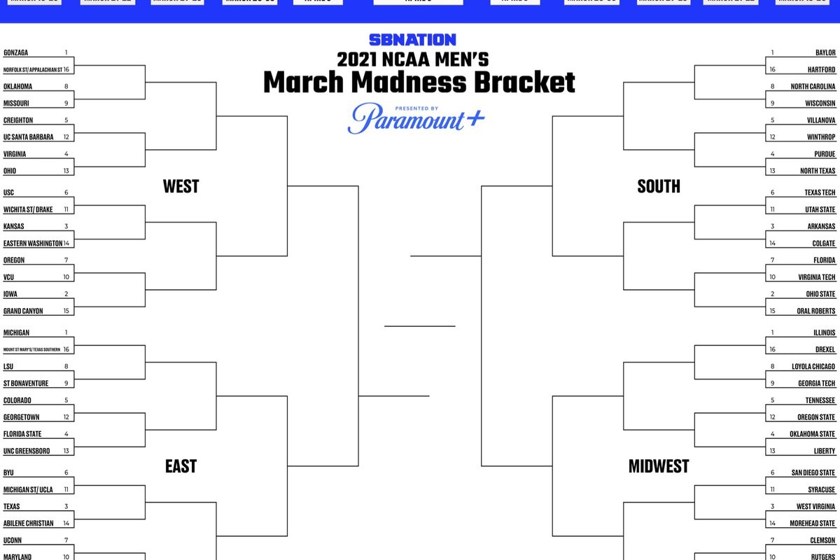 Printable Bracket 2021 Fill Out Your Men s March Madness Picks SBNation