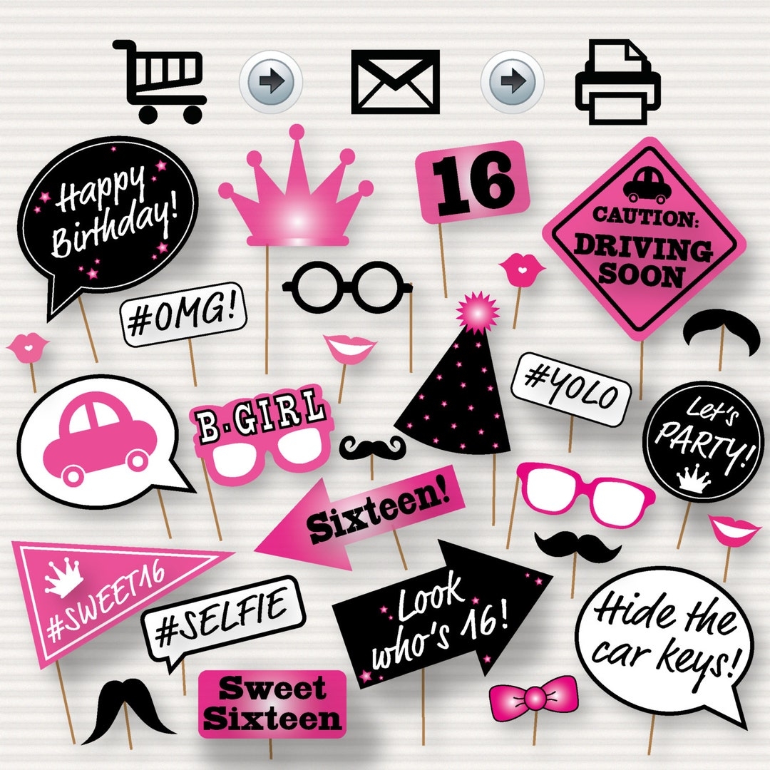 Sweet 16 Photo Booth Printable Props Printable Sweet Sixteen Photobooth 16th Birthday Party Sweet 16 Party Sweet Sixteen Pink DIY Etsy UK