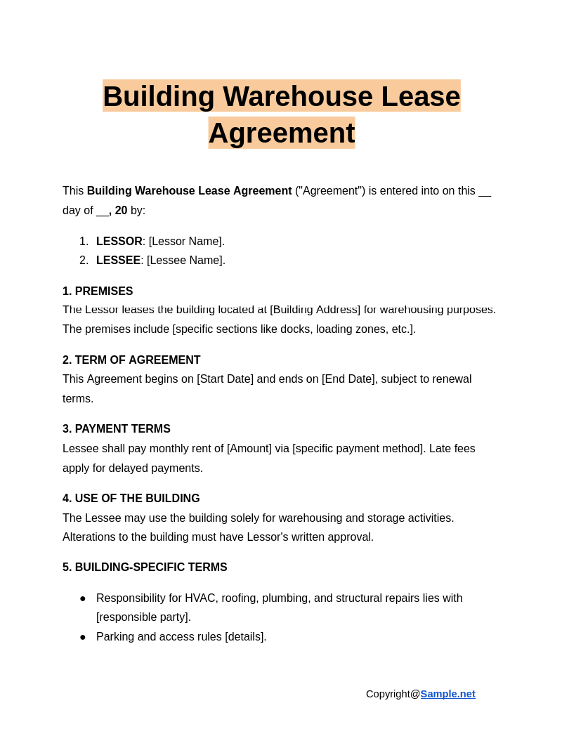 6 FREE Warehouse Lease Agreement Samples To Download